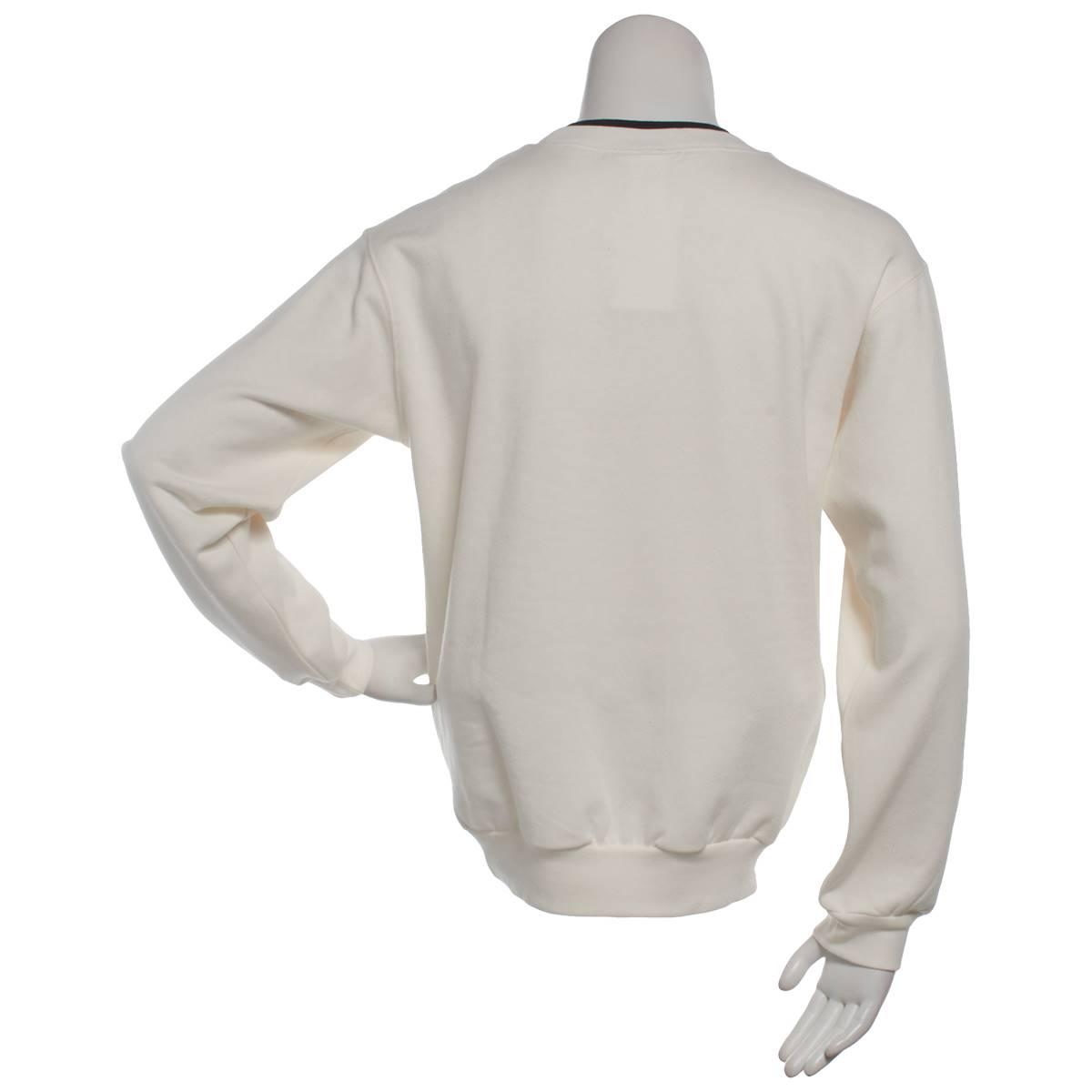 Pattern: Solid Sleeve Length: Long Sleeve Neck: Crew Neck Contrasting neckline inlay Rib-knit cuffs & hem Fleece inner lining Embroidered graphics Embellished front Linear hemline Pullover.