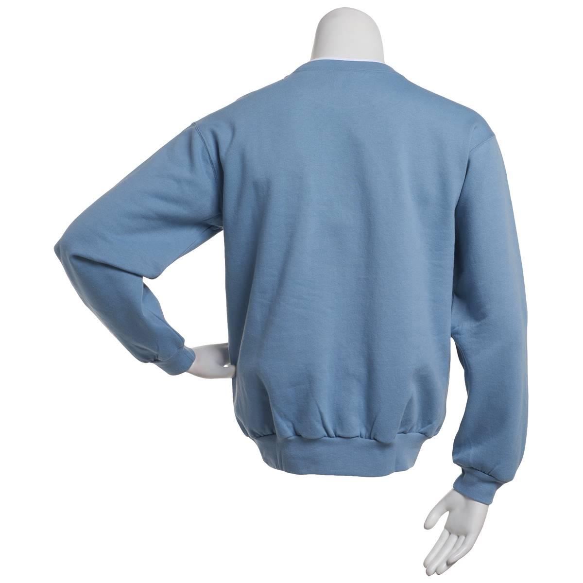 Pattern: Solid Sleeve Length: Long Sleeve Neck: Crew Neck Contrast neckline inlay Rib-knit neck, cuffs & hem Set-in sleeve seaming Fleece inner lining Embroidered graphic Banded hem & cuffs Embellished front Pullover.