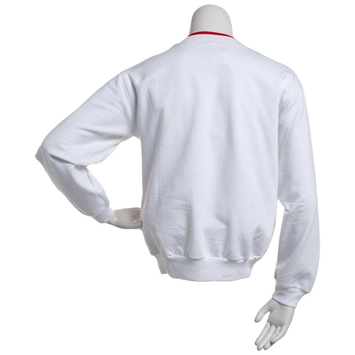 Pattern: Solid Sleeve Length: Long Sleeve Neck: Crew Neck Contrast neckline inlay Rib-knit neck, cuffs & hem Set-in sleeve seaming Fleece inner lining Embellished graphic Banded hem & cuffs Pullover.