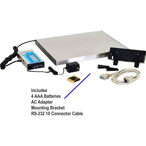 LPS150 scales are particularly suited to shipping and warehouse applications and general purpose weighing. These are very affordable scales with high accuracy. The dual power modes (battery and AC adapter) enable portability or permanent installation (both included). A large, simple to read display can be wall or stand mounted for easy visibility and the large keyboard switches work with gloved hands (wall and desk bracket included).The indicator cable (200 mm) is a coil style for durability and easy extension. The LPS150 features RS-232 interface that can transmit and receive using a demand type protocol. Scale comes standard with NCI protocol and interfaces to most common shipping software, including UPS Worldship Online. A durable low profile platform allows for easy weighing. The LPS150 is a low cost yet versatile and portable scale. Not Legal for Trade. Applications: Shipping/Receiving, Mailroom, Manifest Systems, General Purpose Weighing.