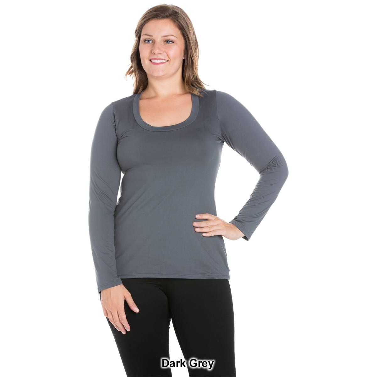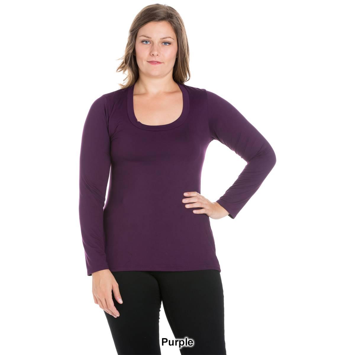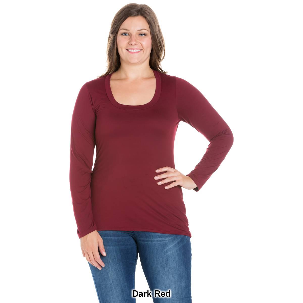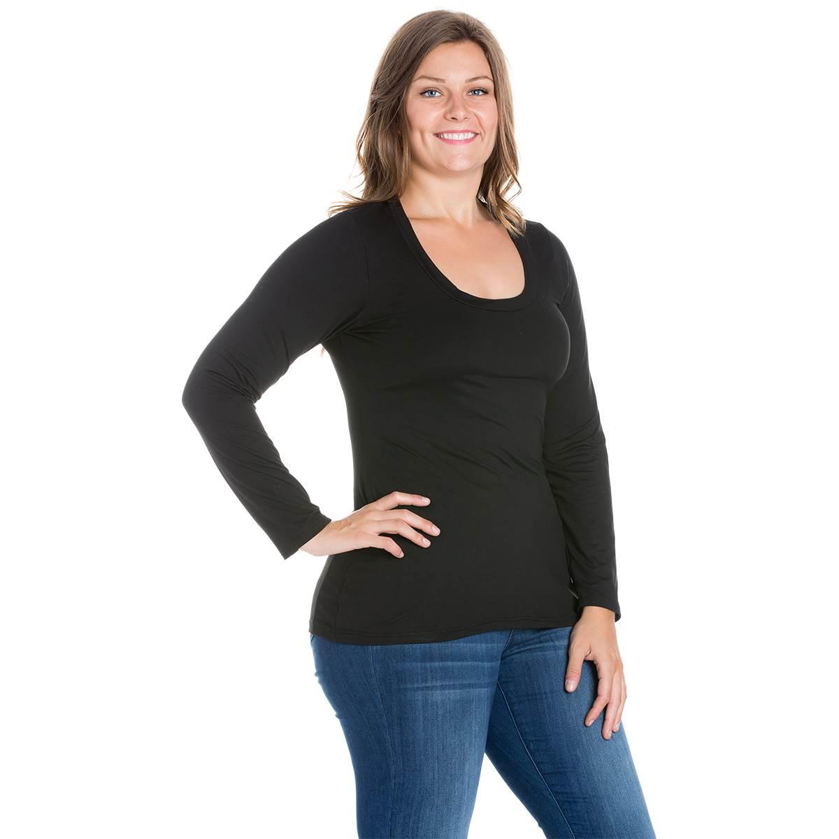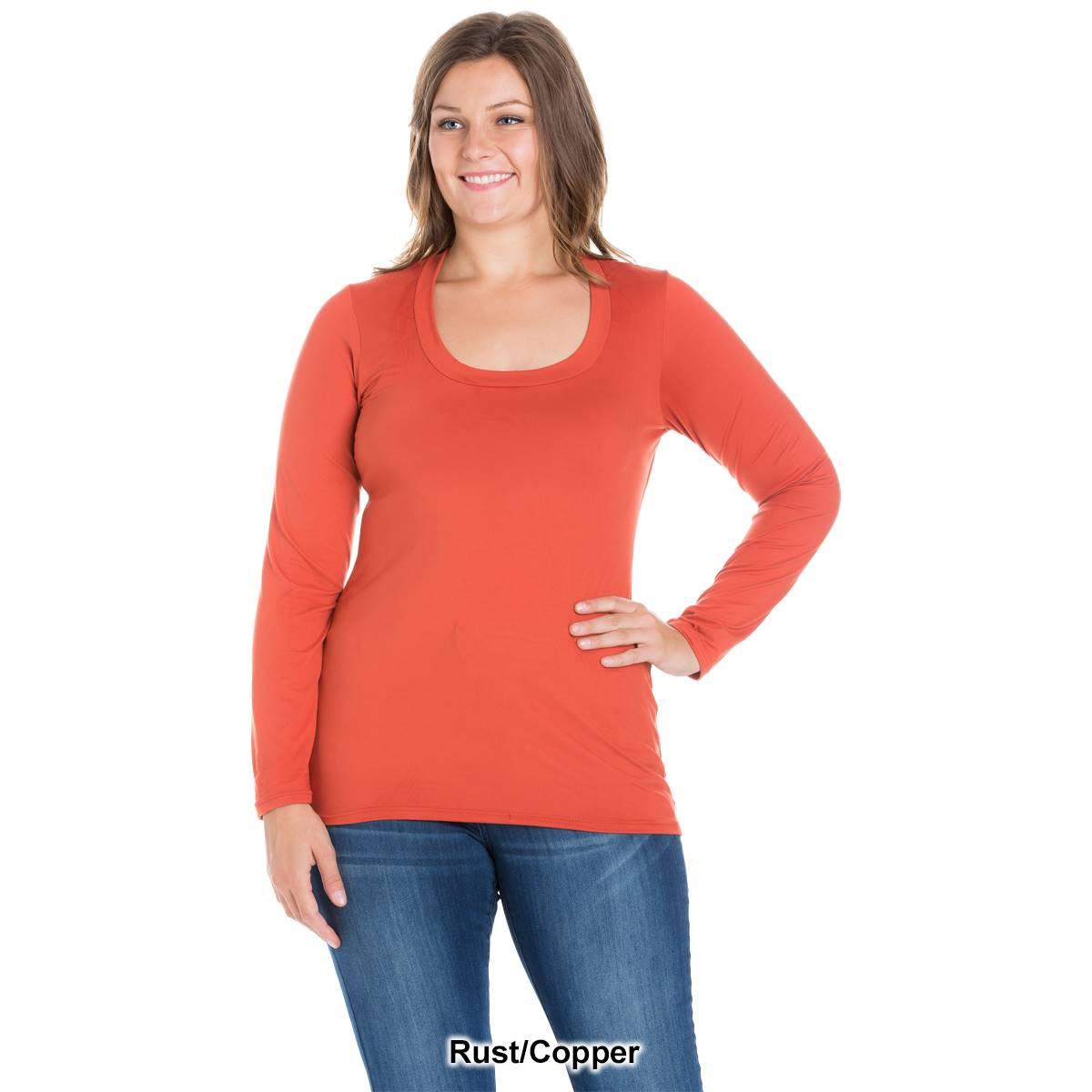Our Plus Size 24/7 Comfort Apparel scoop neck top is essential to any wardrobe. This long sleeve tee is available in six must have solid colors. The fitted yet comfortable style gives this top a polished look that can be worn alone or layered.