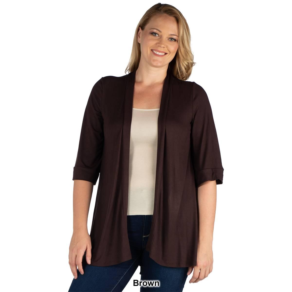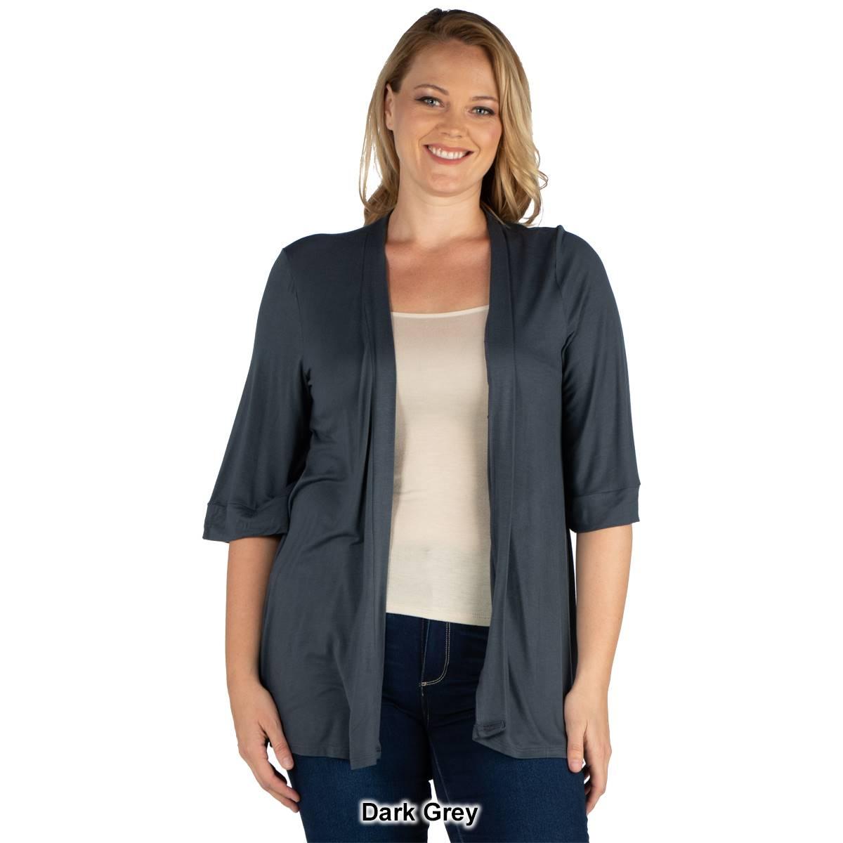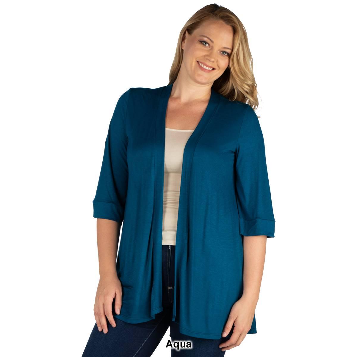 This Plus Size 24/7 Comfort Apparel open front cardigan is the perfect added touch to any outfit. It features elbow length sleeves, extended length, and comfortable material. This open cardigan is easy to add to any outfit for a polished layered look.