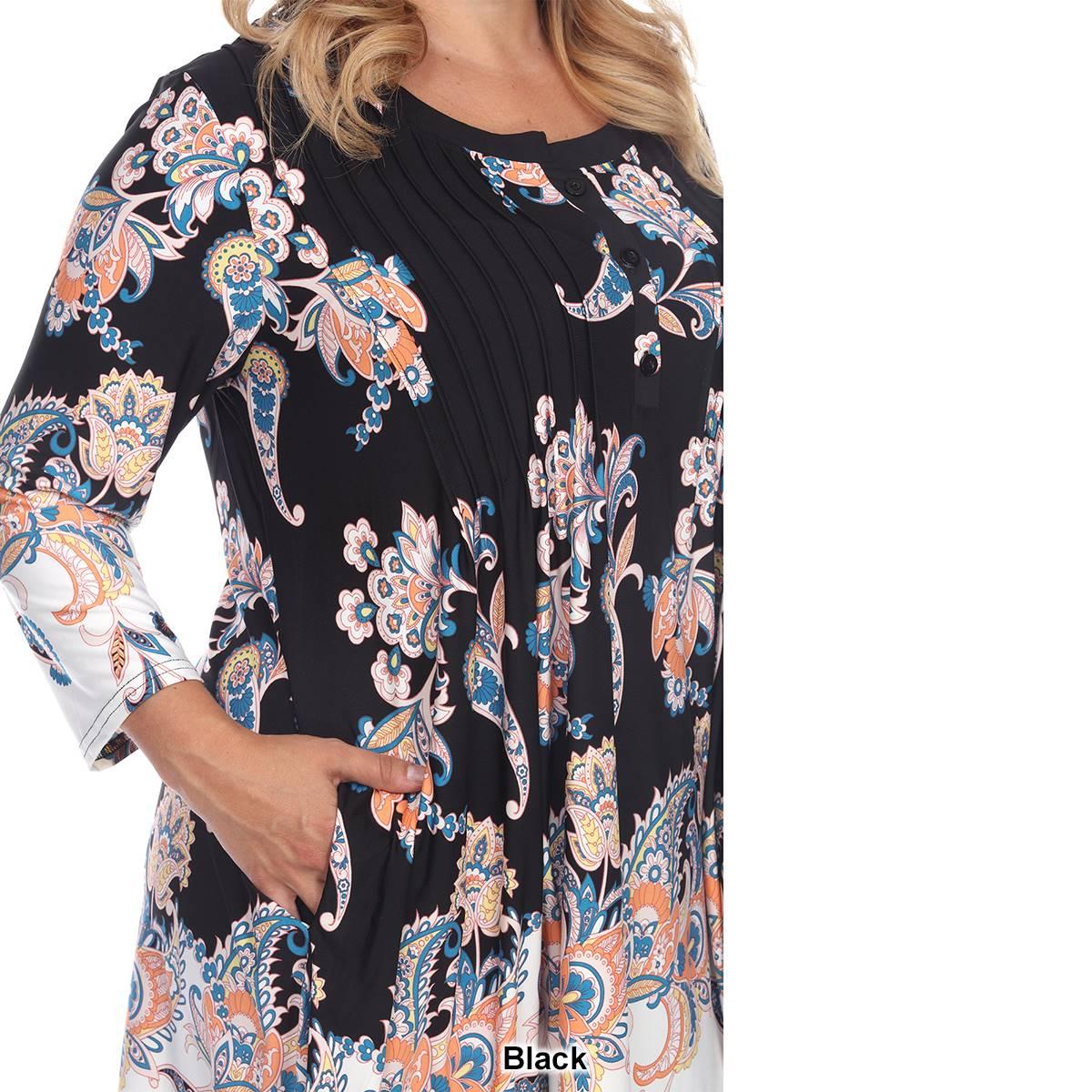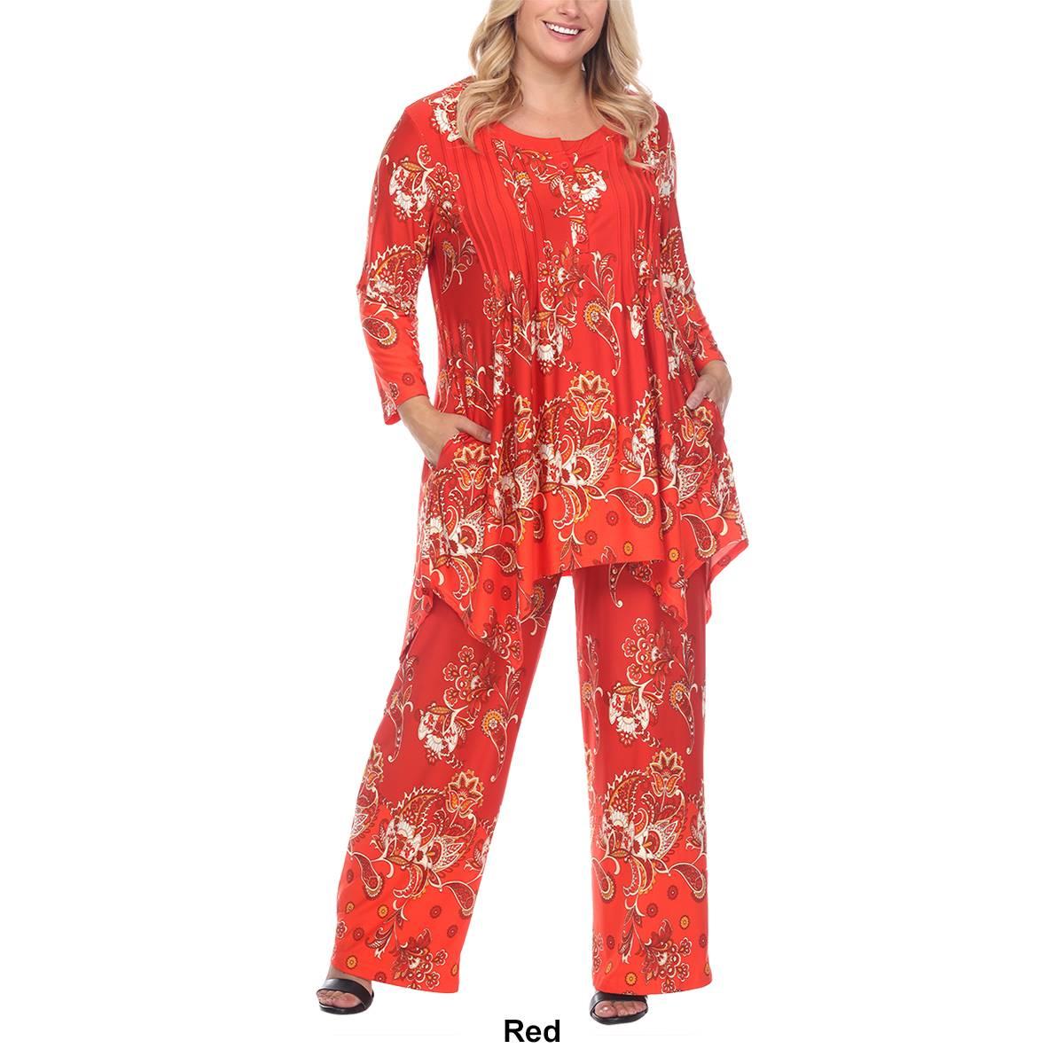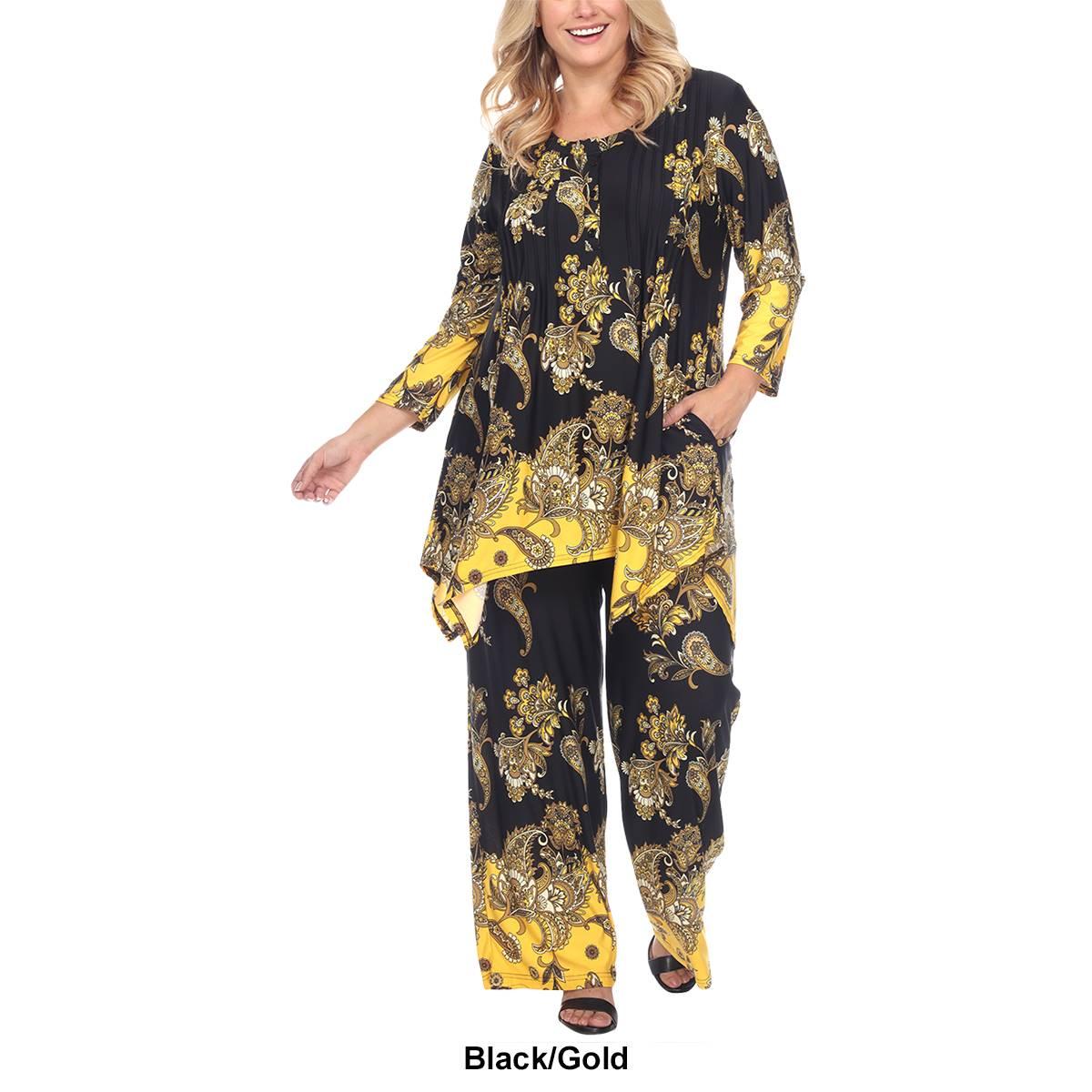 Stay casual and confident in these Plus Size White Mark palazzo pants and top set are made out of premium quality stretchy knit for a most flattering fit. Featuring a floral paisley print head to toe, scoop neck with button details, and three-quarter length sleeves. This set can be dressed up with heels or worn casually with flats.