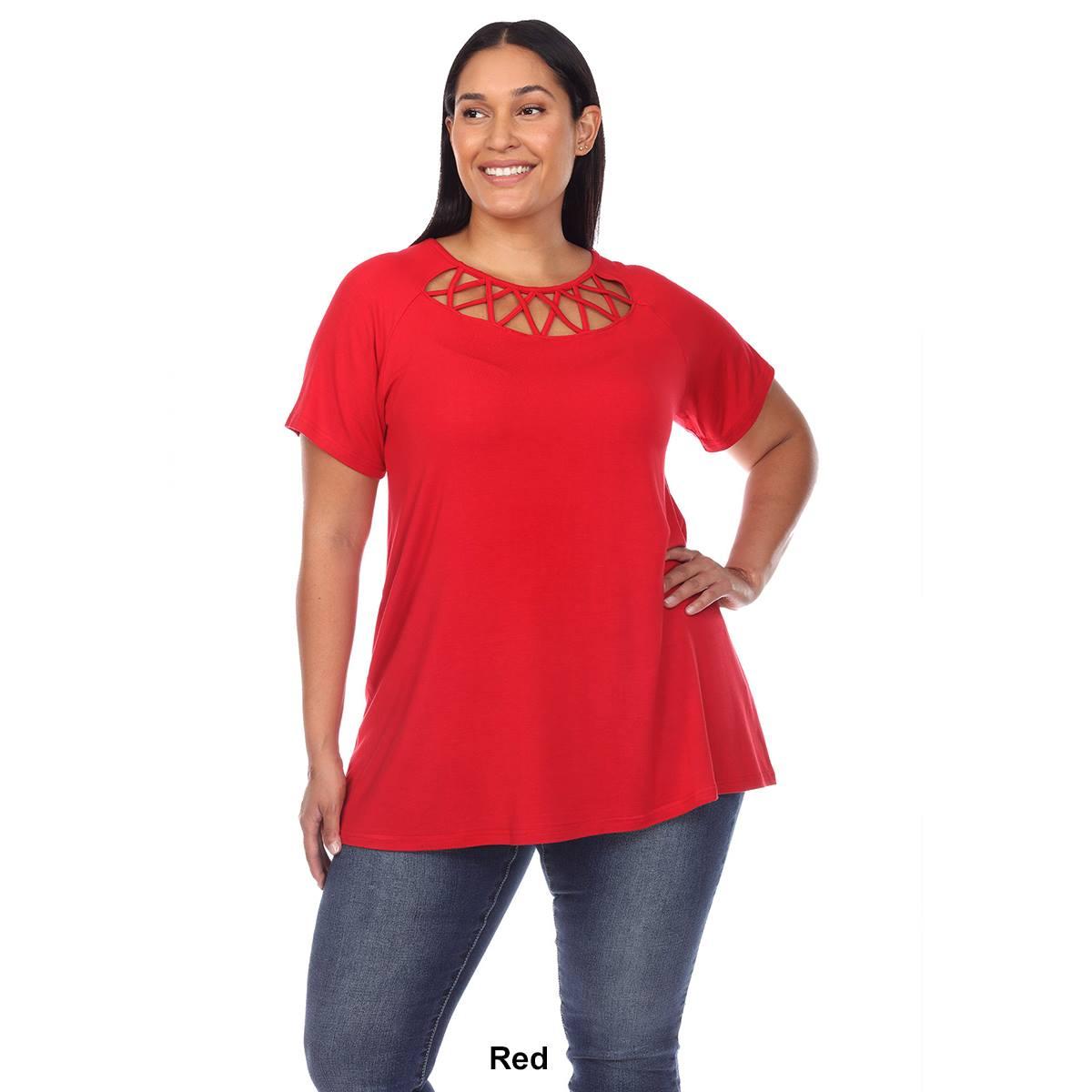 Plus Size White Mark Crisscross Neckline Short Sleeve Tunic