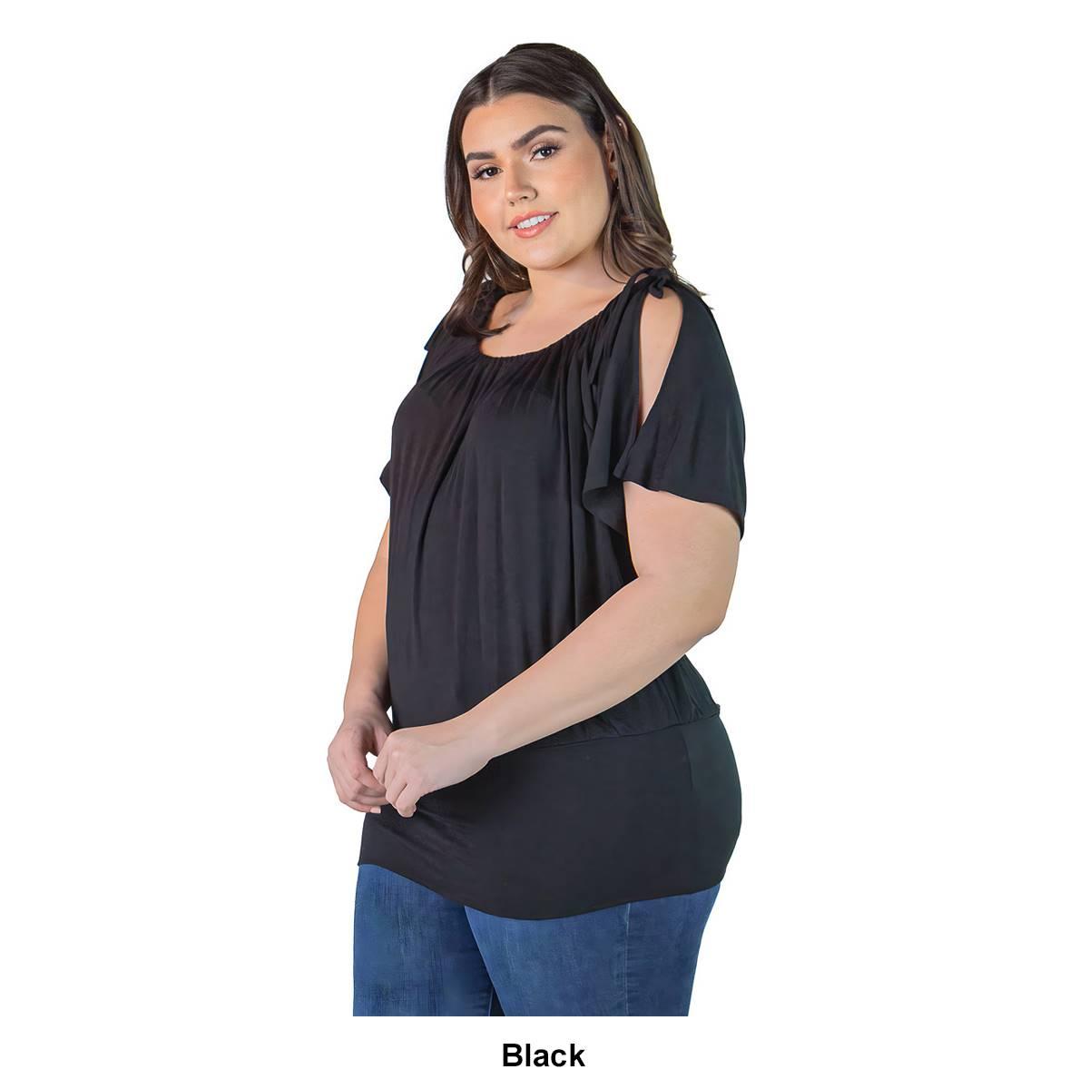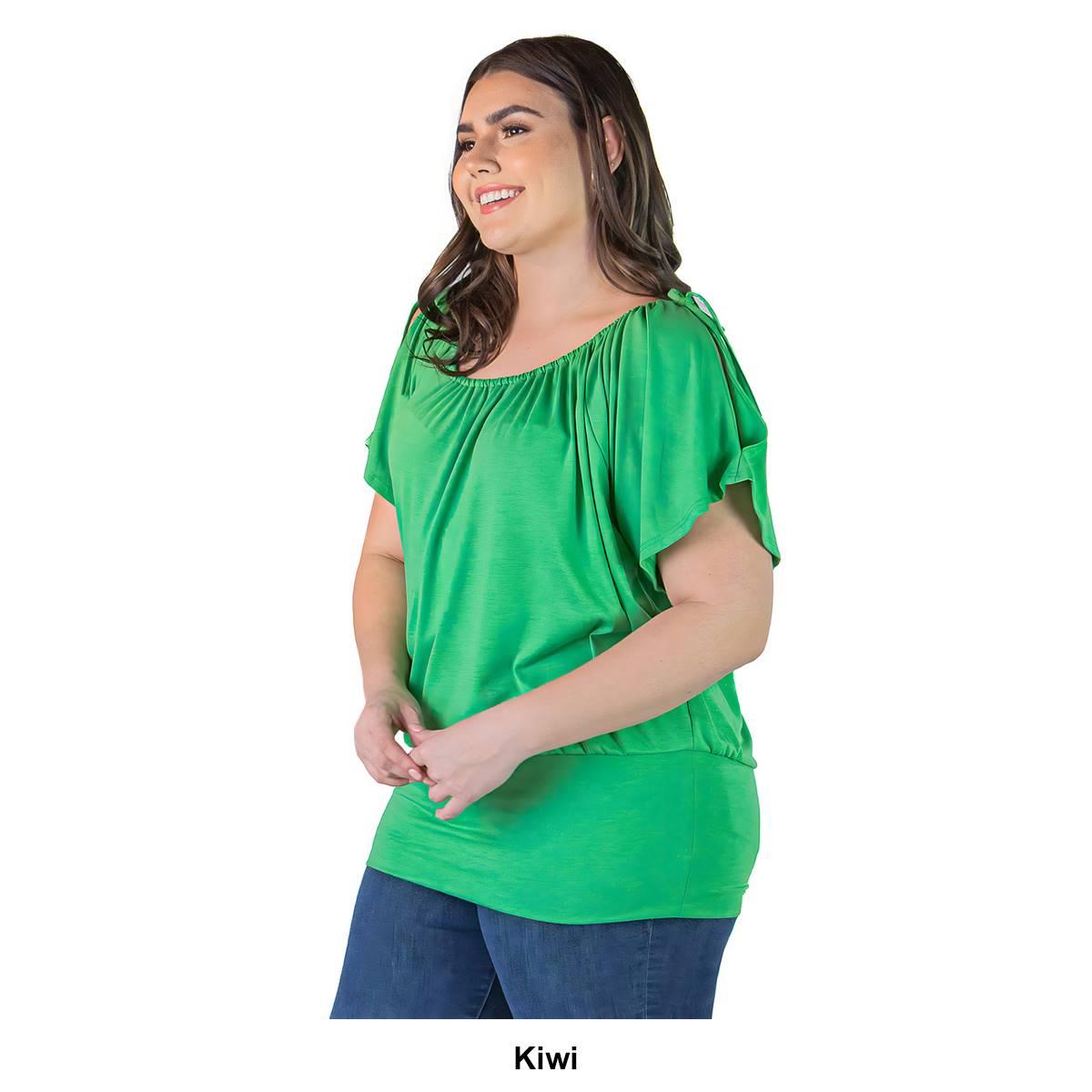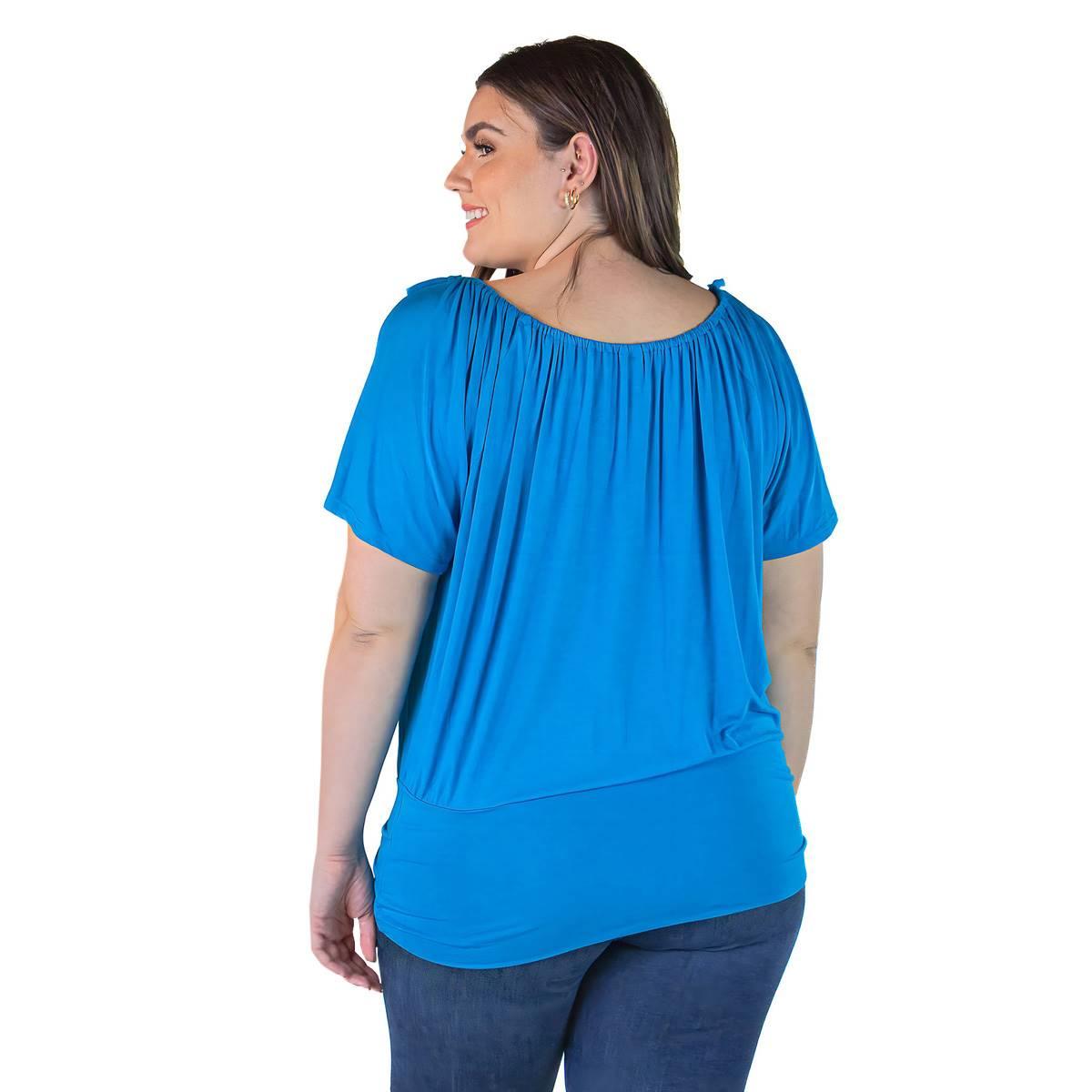Unleash your flirty side with the Plus Size 24/7 Comfort Apparel short sleeve split-shoulder blouse. This versatile top is designed to make you feel confident and beautiful, with its beautiful color options and a flowy fabric that will flatter your figure. The top has a unique split-shoulder design that allows you to wear it on the shoulders as a scoop neck top or off the shoulders for a more flirty look. The elastic neckline ensures a comfortable fit that will keep you feeling great all day. Whether you're headed to work or a night out with friends, this top will have you looking and feeling your best. The versatility and flowy fabric make it perfect for any occasion. Don't settle for ordinary, choose 24/7 Comfort Apparel for a top that is both stylish and comfortable.