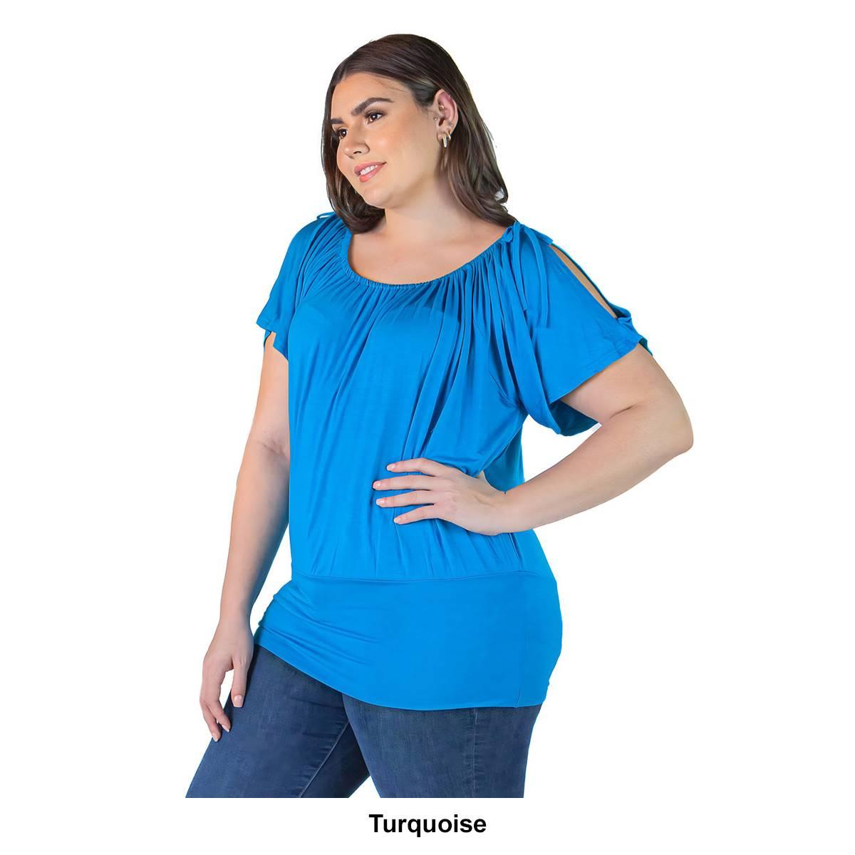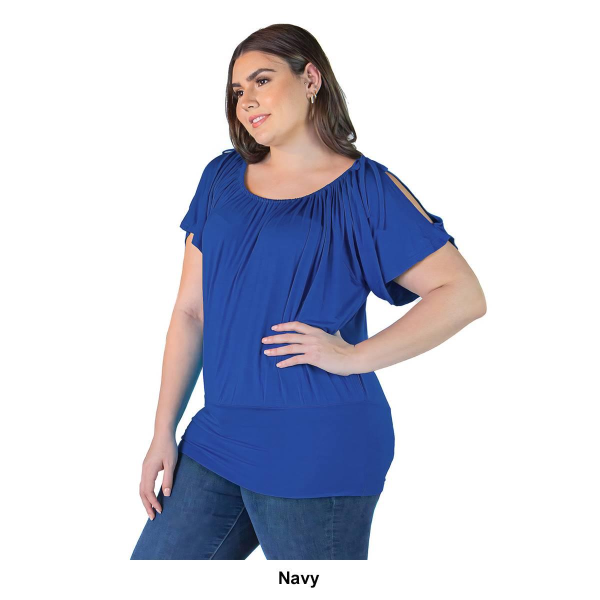 Buy Plus Size 24/7 Comfort Apparel Short Sleeve Split Shoulder Blouse for $28.90 at @ Macys.com