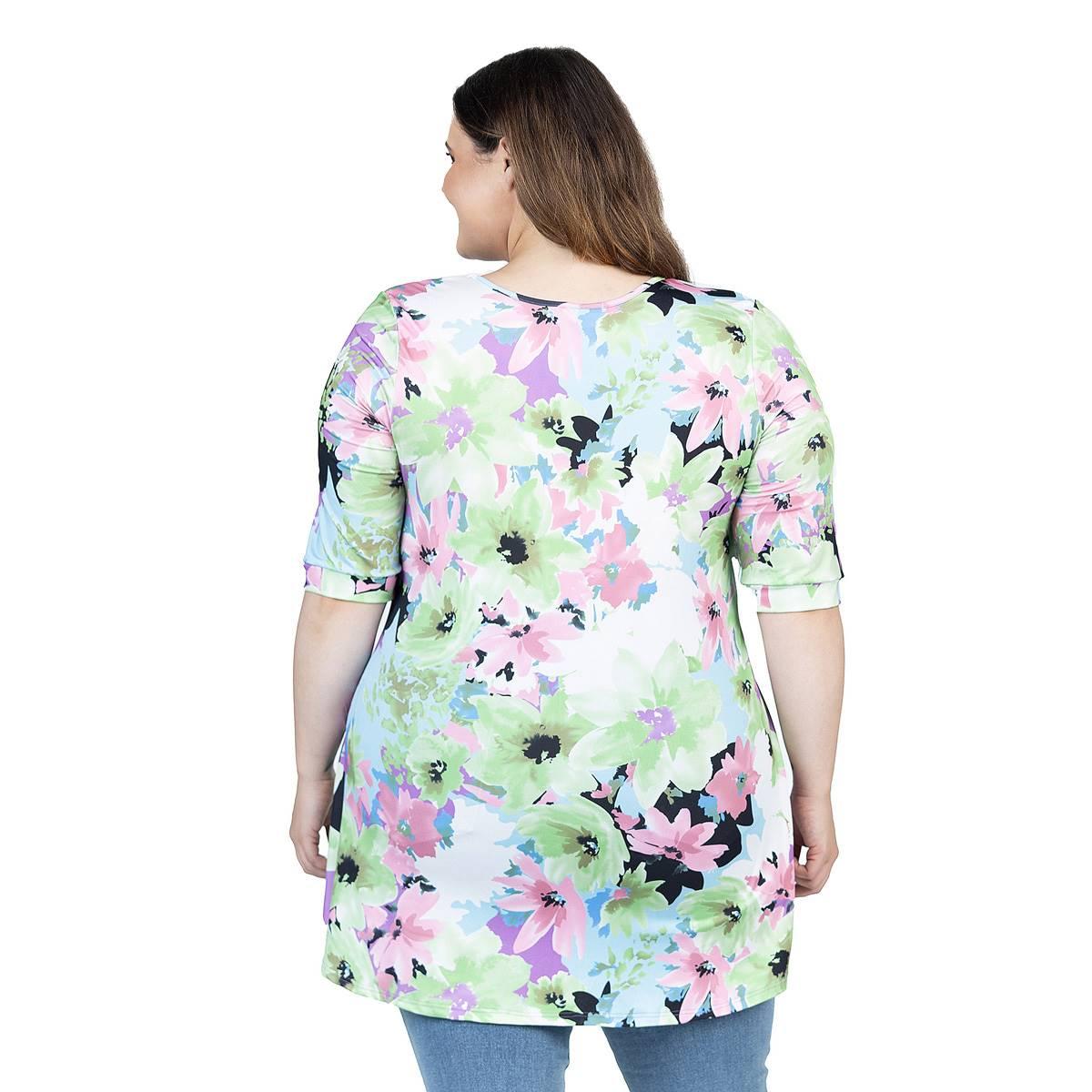 Buy Plus Size 24/7 Comfort Apparel Floral Elbow Sleeve V-Neck Top for $36.99 at @ Boscovs.com