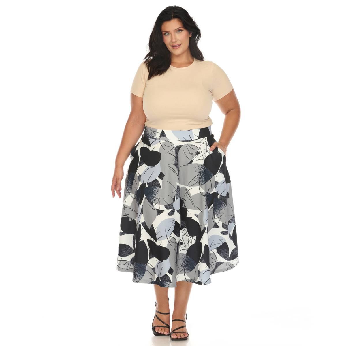 Buy Plus Size White Mark Leaf Print Vintage Flared Midi Skirt for $35.40 at @ Boscovs.com