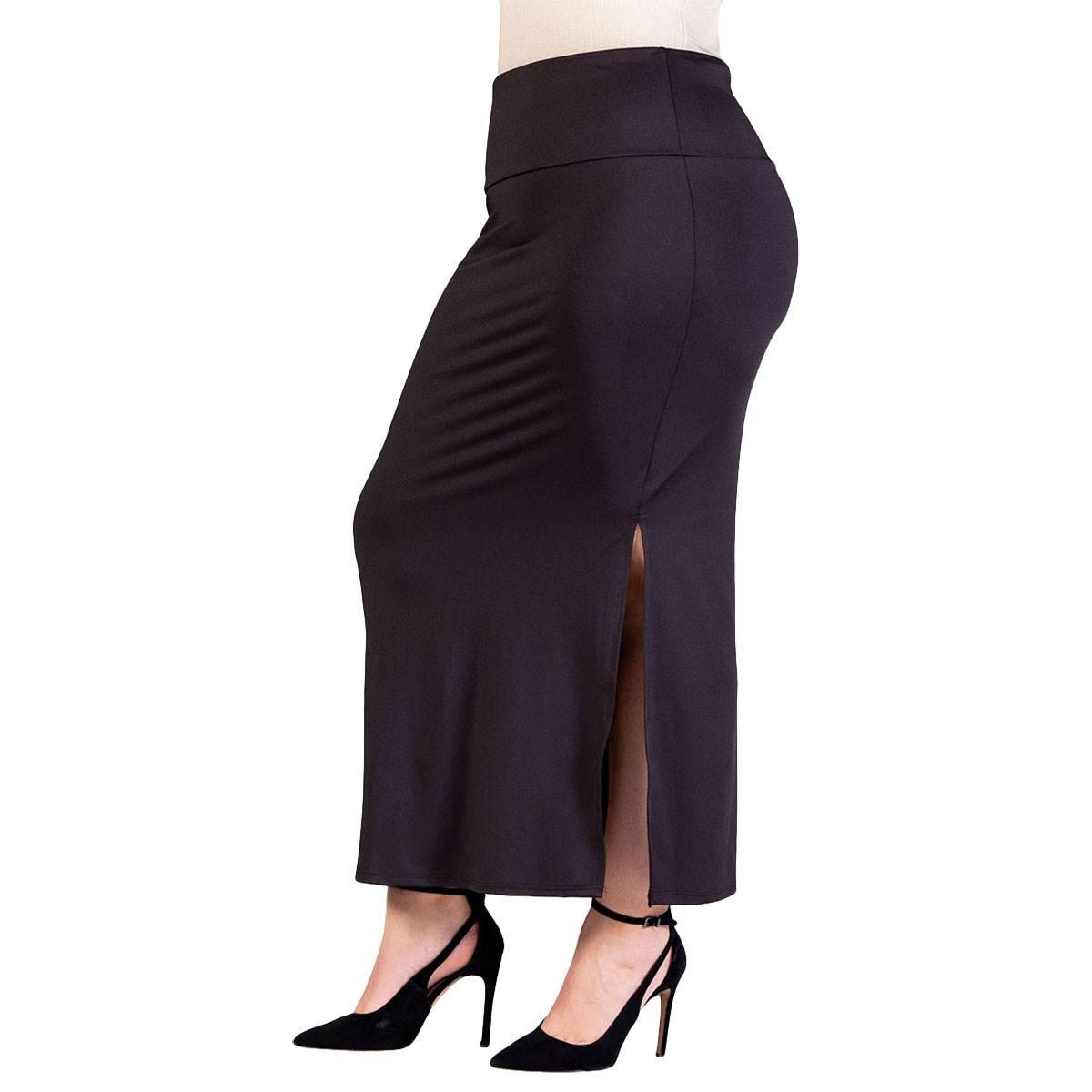 Plus Size 24/7 Comfort Apparel Versatile Side Slit Maxi Skirt