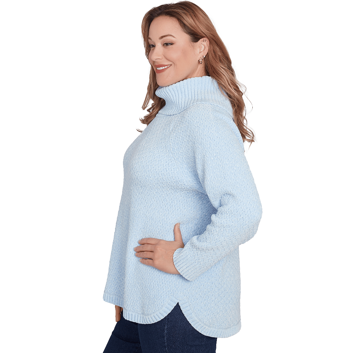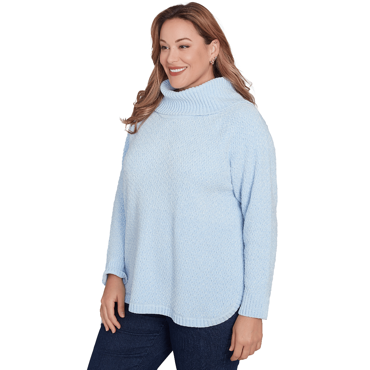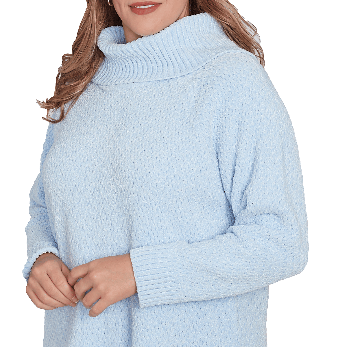 Collection: Blue My Mind Pattern: Solid Sleeve Length: Long Sleeve Neck: Cowl Neck Rib-knit neck, cuff & hem Cable-knit construction Rounded split side hems Linear hemline Cool iron.