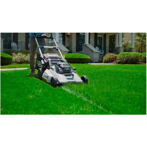 EGO LM2135SP POWER+ 56V Select Cut Poly Deck Self Propelled Mower Kit with 7.5Ah Battery & Charger The EGO POWER+ Select Cut Self-Propelled Mower delivers performance that exceeds the power of gas. The Select Cut multi-blade cutting system is equipped with two, interchangeable lower blades; the Premium Mulching Blade and the Premium Bagging Blade. The Premium Mulching Blade is ideal for weekly mowing, giving you the cut quality and run time expected from a high-end gas lawn mowers. The Premium Bagging Blade is a heavy-duty blade that turns grass into fine fragments ideal for both bagging and mulching. Both blades can be used interchangeably based on the desired cut. The EGO Upper Blade is used in combination with the lower blade chosen to slice the grass into fine fragments; this greatly enhances cutting performance with all grass types. EGO's Self-Propelled Touch Drive Technology comes from years of research and development. Touch Drive Technology puts complete control of the self-propelled system in the palm of your hands by using pressure to engage the system. Easily control the variable speed with a dial positioned at your fingertips for safe and convenient operation. Specifications: Select Cut Multi-Blade System for premium cutting performance that exceeds gasTouch Drive Self Propelled Technology puts complete control in the palm of your handsGet 60 minutes of run time on single charge when used with the recommended 56V 7.5 Ah ARC Lithium batteryHigh-efficiency brushless motorAdjustable self-propel speed .9 MPH - 3.1 MPH7-position cutting height adjustments: 1.5"- 4"3-in-1 function: mulching, bagging, side dischargeQuick and easy push-button start21" deckBright LED headlights1-handed height adjustmentWeather resistant constructionFolds for compact storageEasy-access 2-bushel grass collection bagPremium Mulching blade and Premium Bagging blade included60-minute charge time when used with the recommended 7.5 Ah ARC Lithium battery and Power+ Rapid ChargerCompatible with all EGO 56V ARC Lithium batteries5-Year Tool WarrantyIncludes 7.5Ah Battery & 550W Charger.