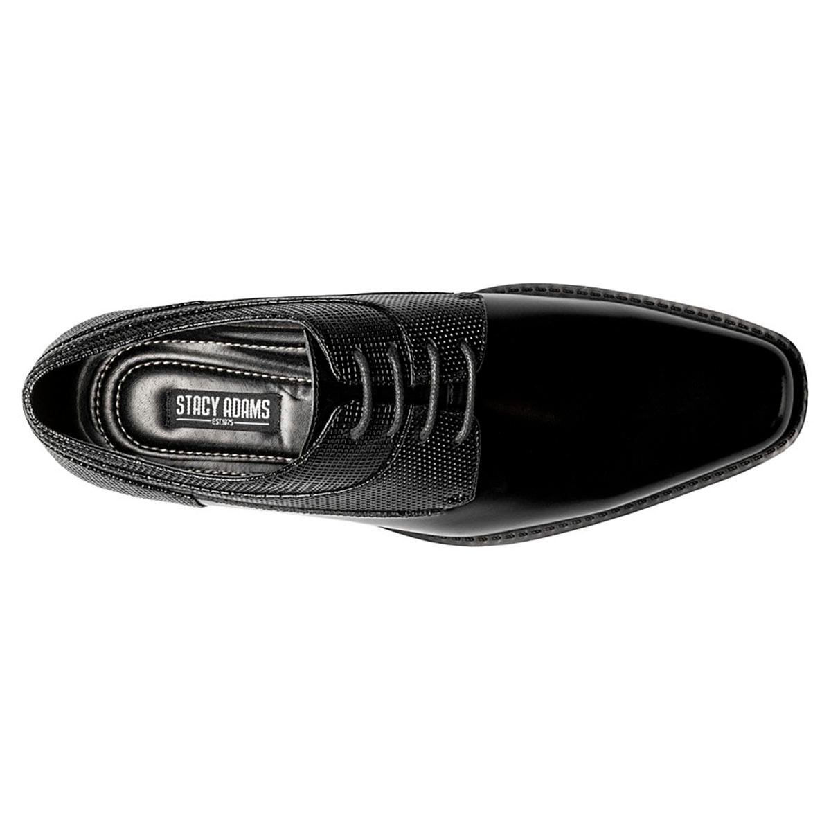 The Mens Stacy Adams Kirkley plain toe oxford has a clean, elegant design that is complimented by eye-catching textured leather along the collar and a modern silhouette. The simple style gives this shoe a unique versatility so that it can be worn to the office and after hours. Smooth and textured leather upper Leather linings for added breathability Fully cushioned insole Durable rubber outsole.