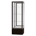 Waddell's Keepsake Series display cases are rugged repositories for archival-quality collections, ideal for museums and historical societies. The aluminum-framed case features adjustable shelves, a locking hinged door, tempered glass, and floor levelers. - Waddell Keepsake Series Display Case - 24", Walnut/Dark Bronze, Mirror Back.