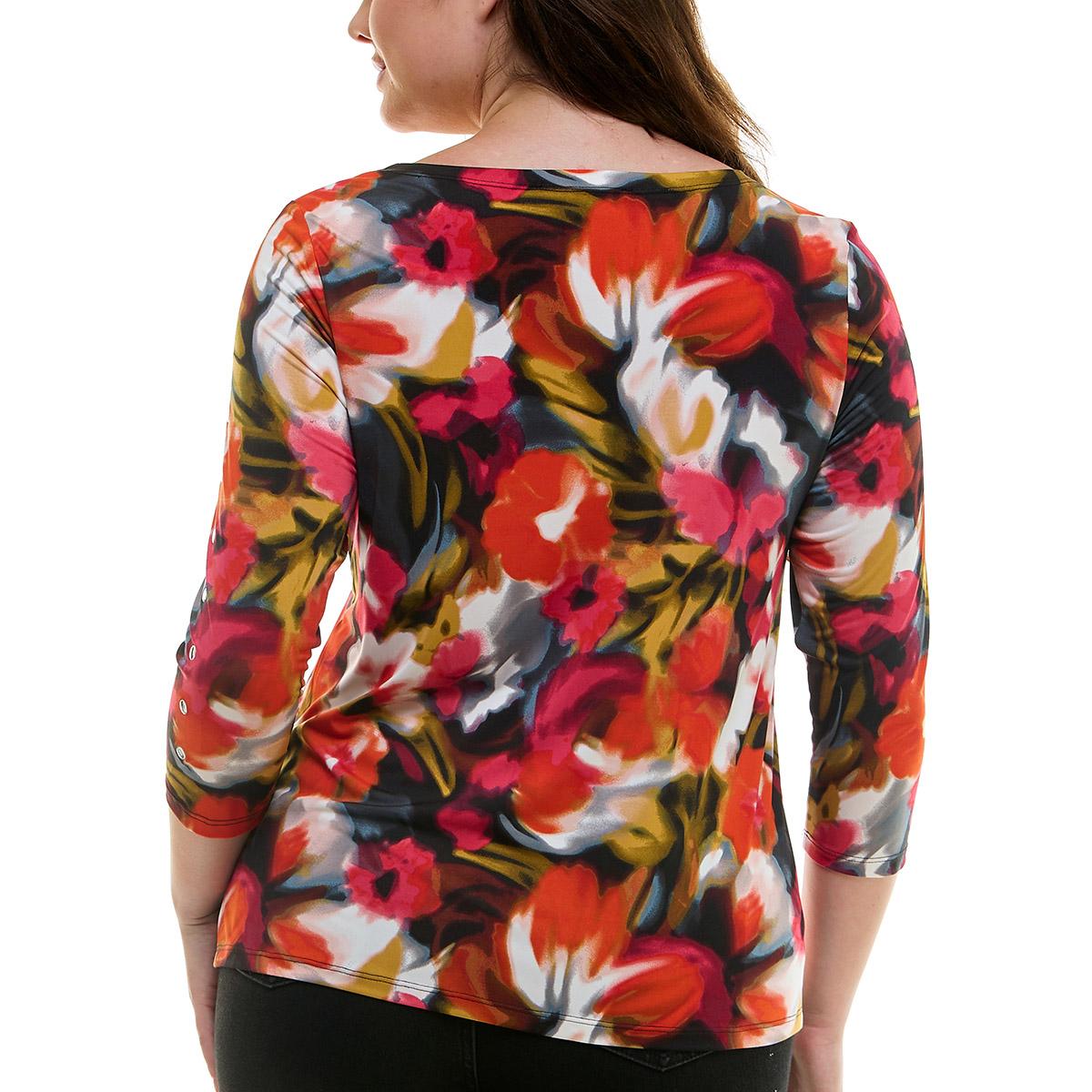 Womens Zac & Rachel 3/4 Sleeve Floral Watercolor Tee
