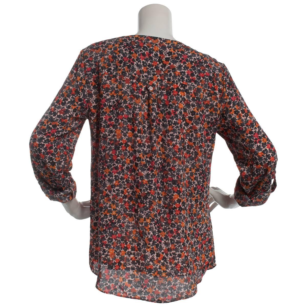 Womens Zac & Rachel Roll Tab 1/2 Placket Ditsy Floral Blouse