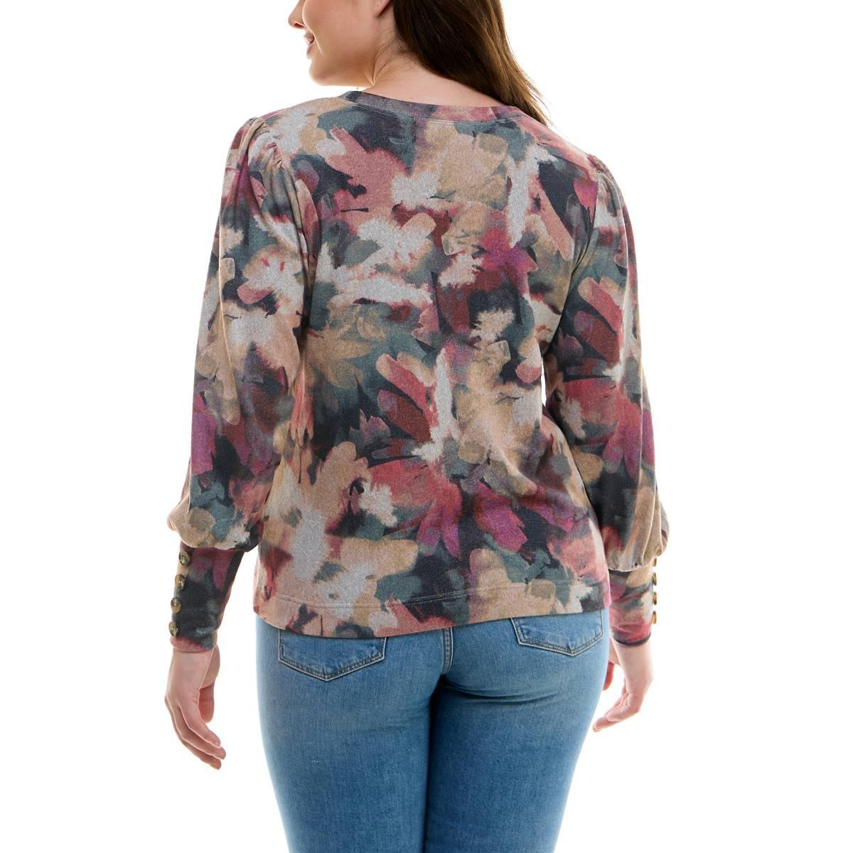 Womens Zac & Rachel Long Sleeve Watercolor Crew Neck Sweater