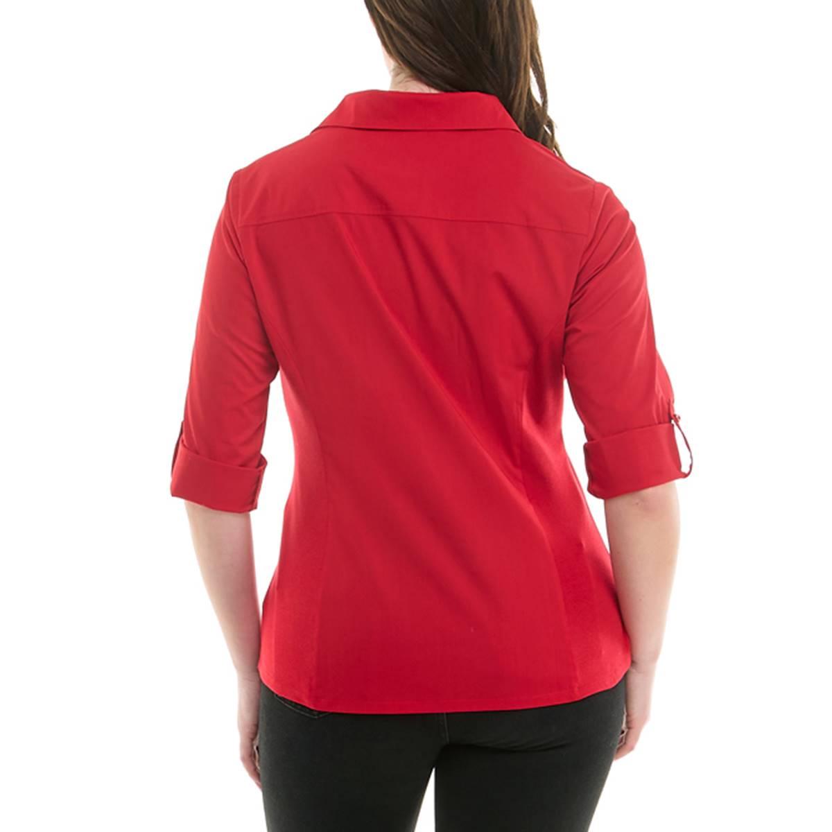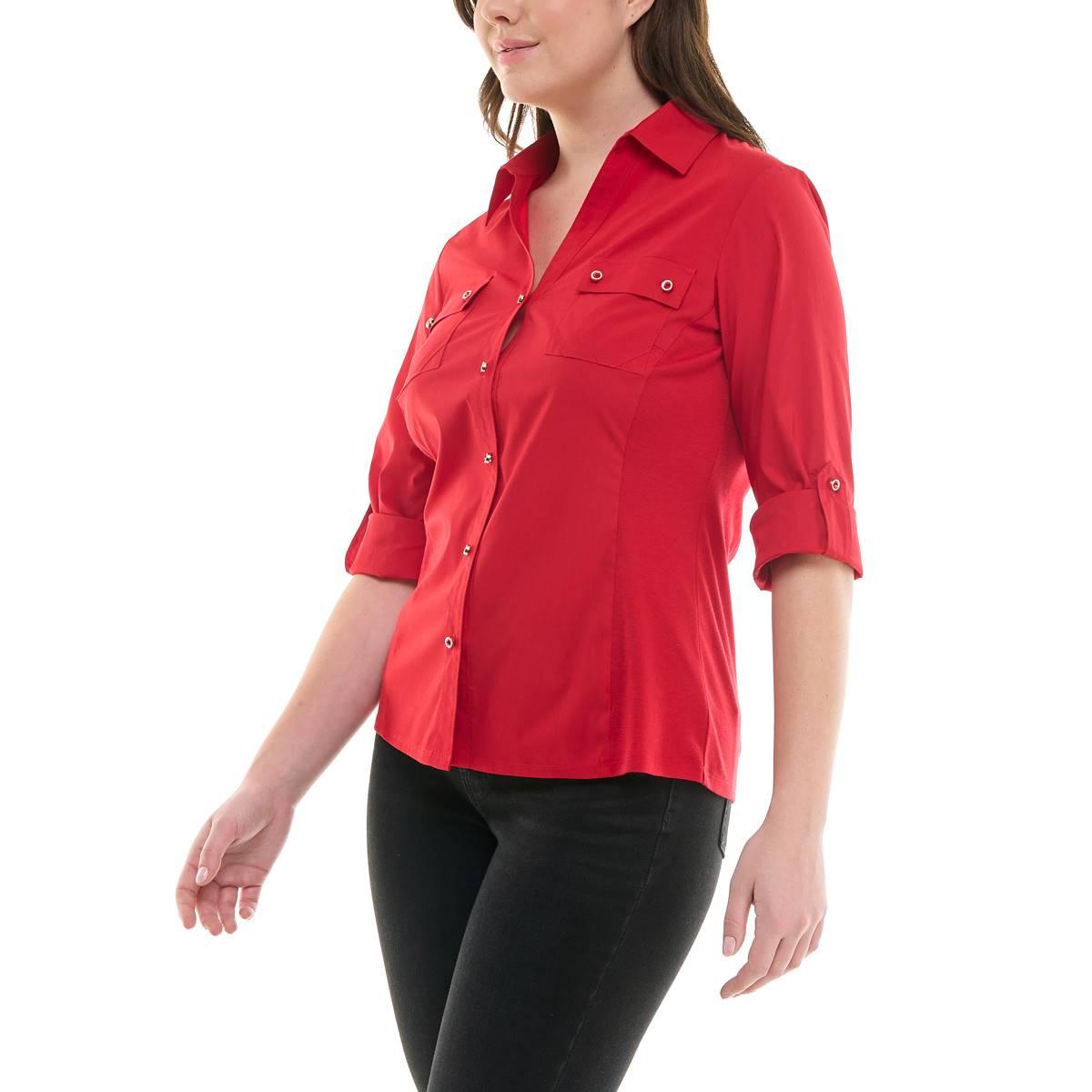 Womens Zac & Rachel 3/4 Sleeve Knit To Fit Causal Button Down