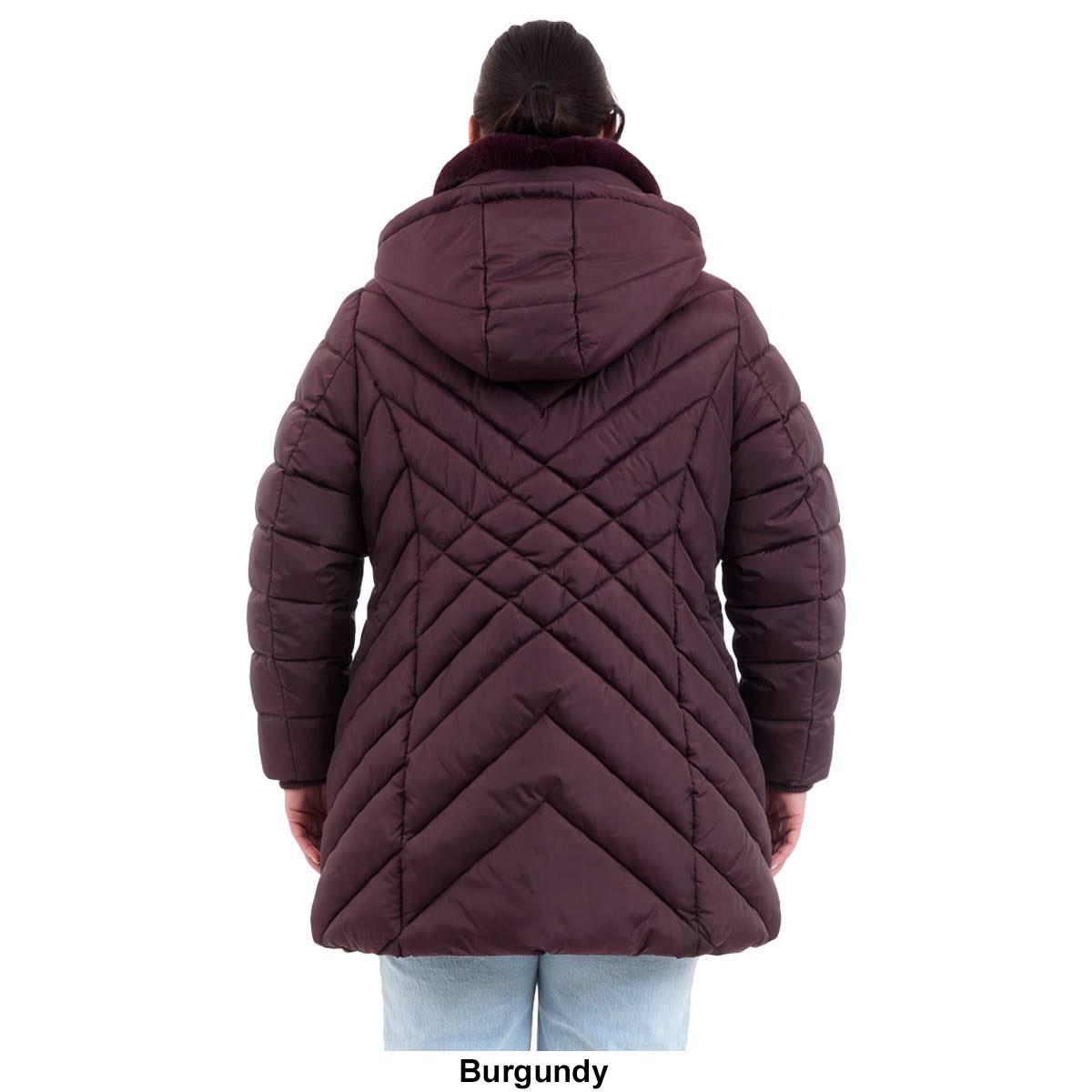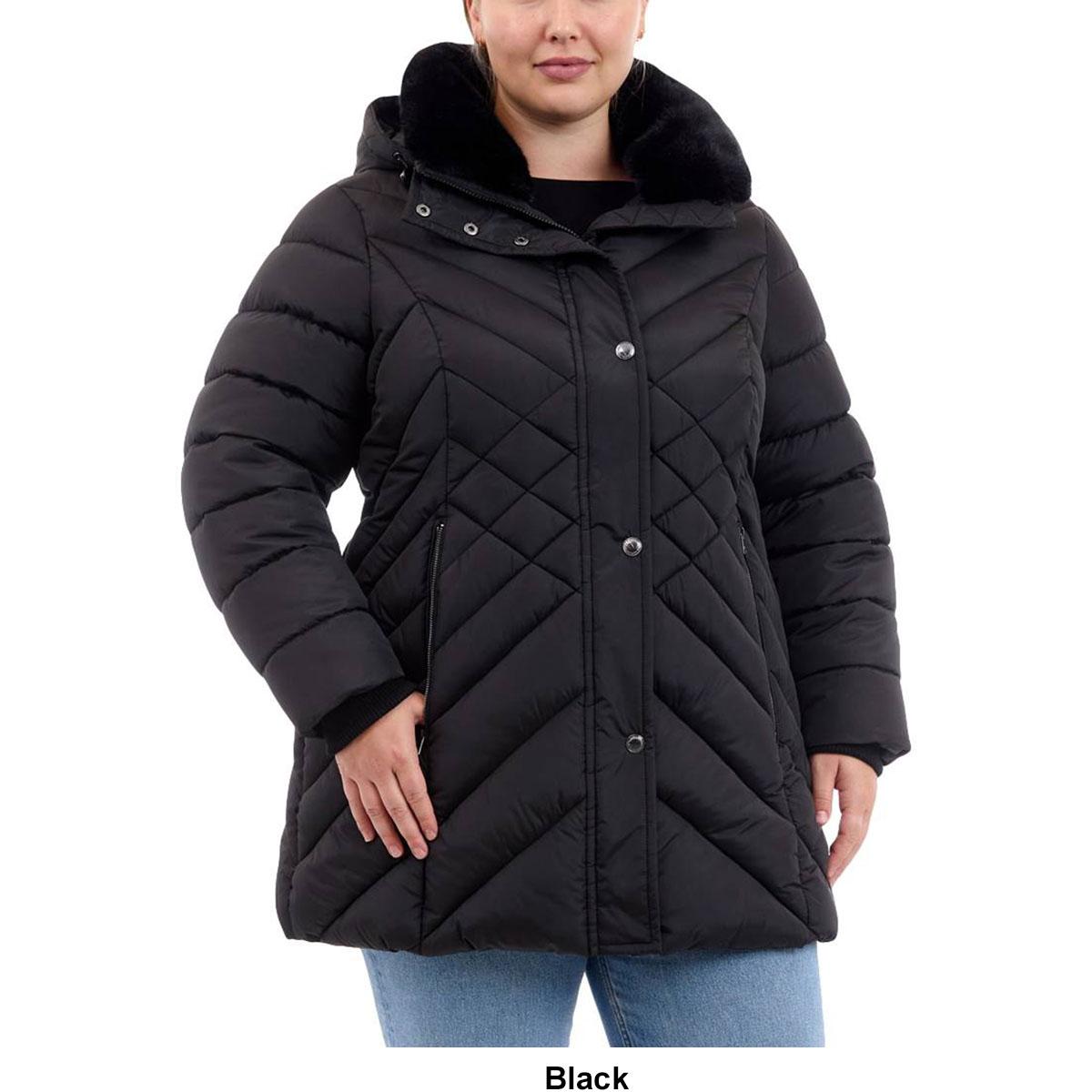 Plus Size London Fog Short Puffer Coat w/Faux Fur Collar