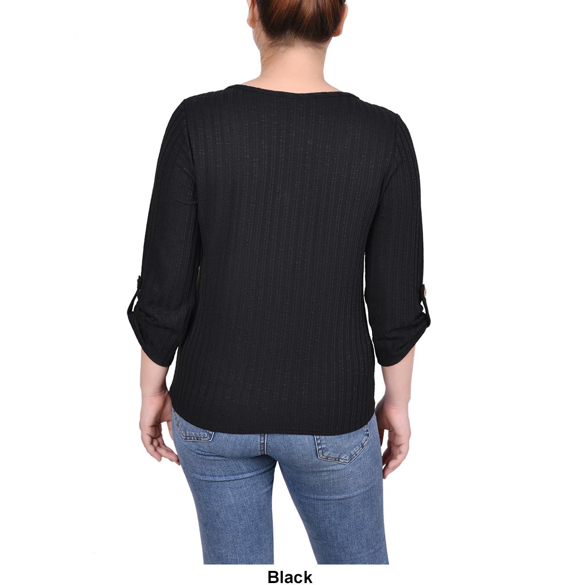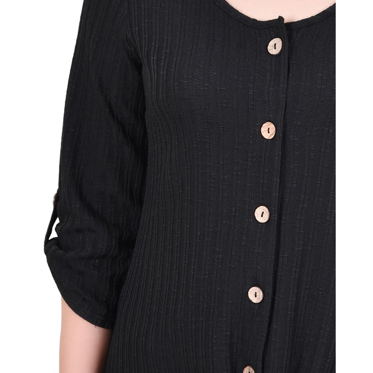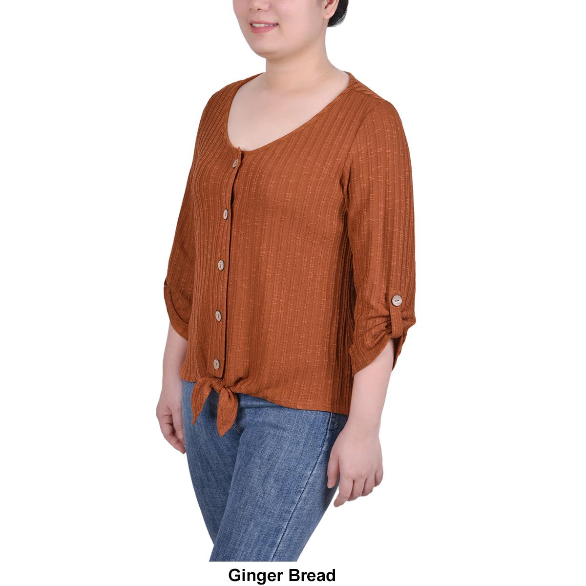 Womens NY Collection 3/4 Sleeve Rib Knit Button Down Tie Fron Tee