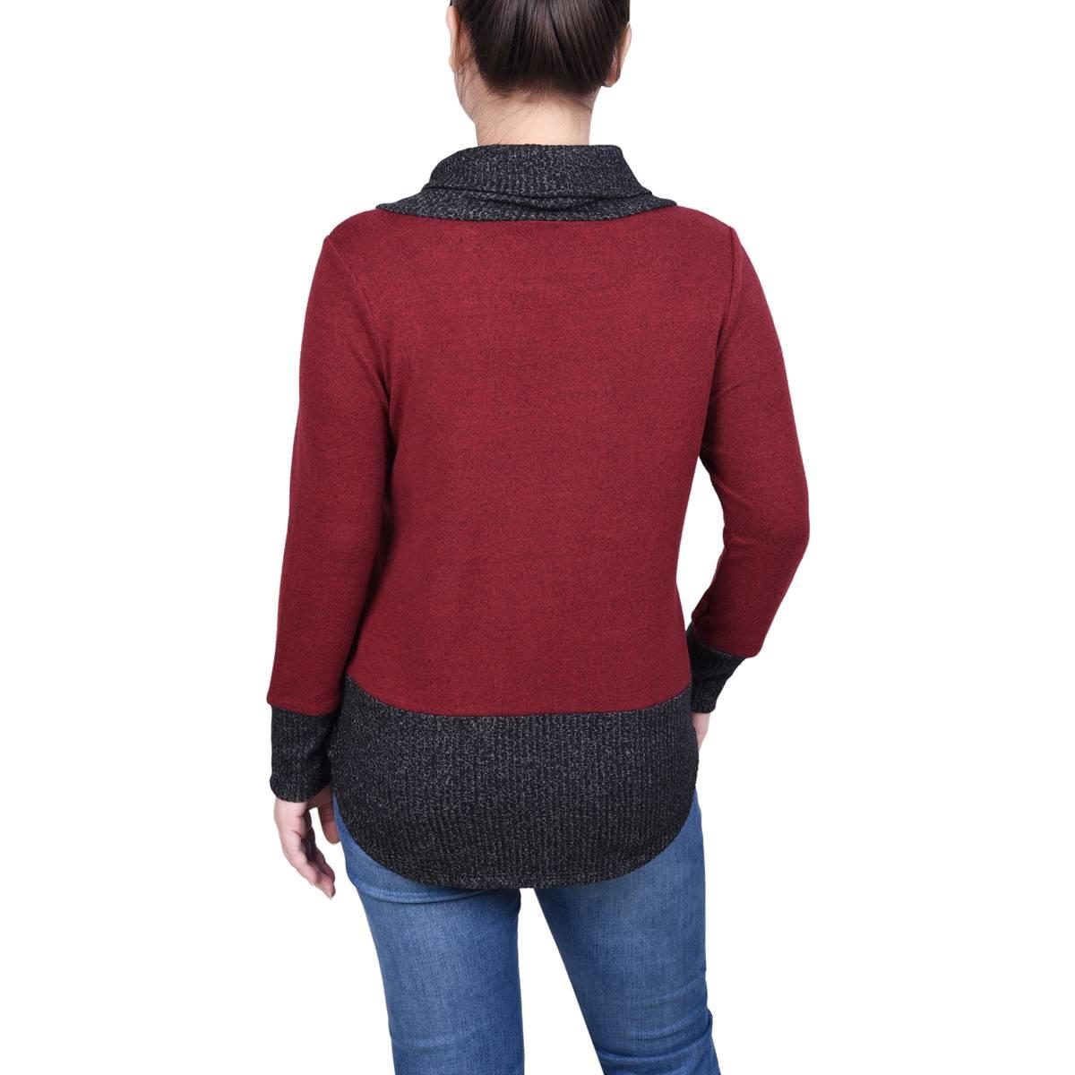Womens NY Collection Long Color Block Cowl Neck Sweater