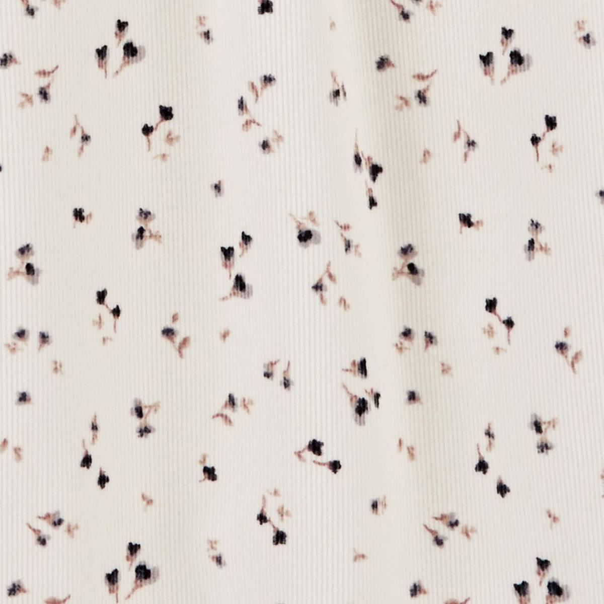 Pattern: Ditsy Floral Sleeve Length: Long Sleeve Front button placket Ruffle overlay from shoulders to bodice Covered elastic cuffs Front and back gathered center waistline Soft corduroy fabric.