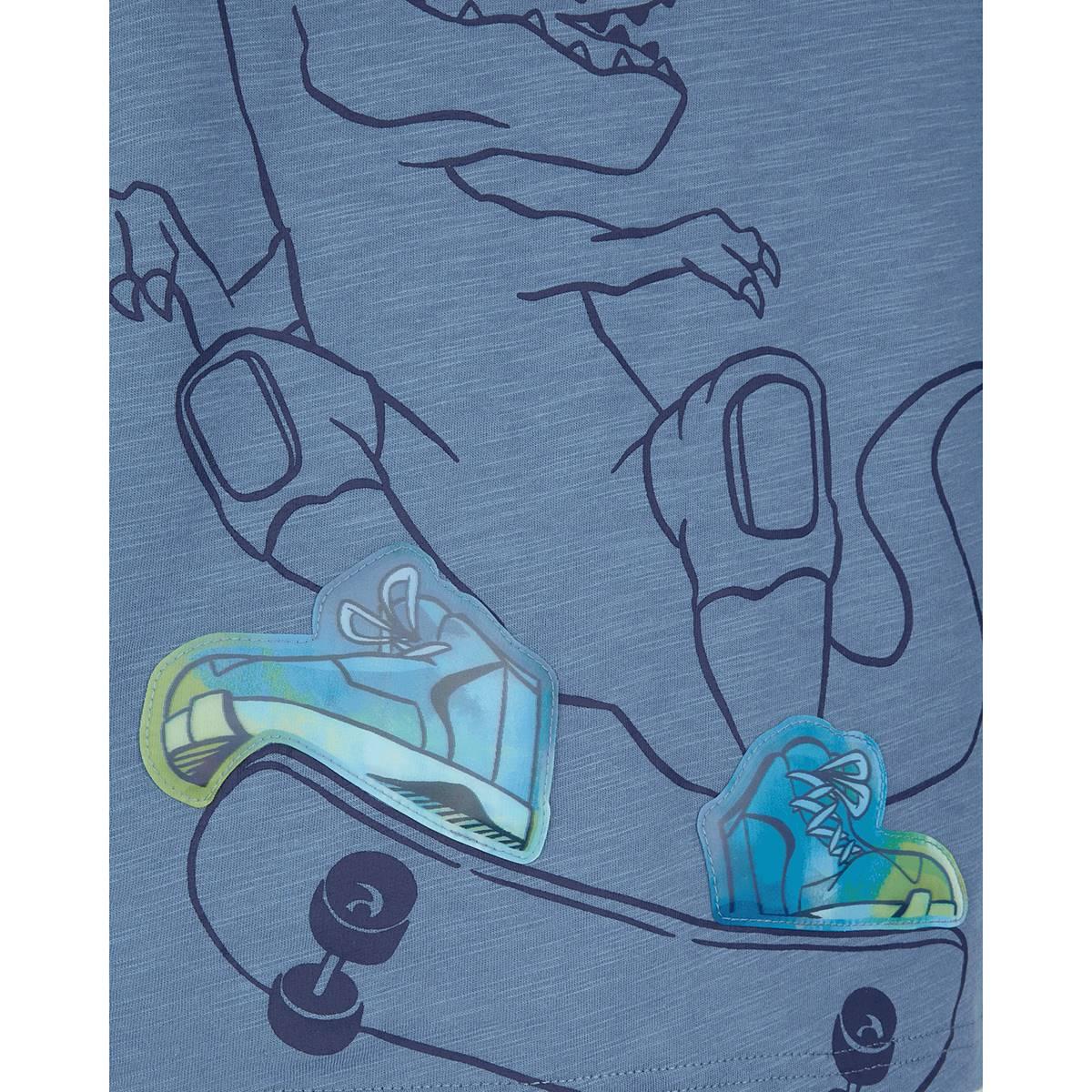 Pattern: Color Block Sleeve Length: Long Sleeve Rib-knit neckline and cuffs Built-in sleeves Large T-rex skateboarding graphic Color shifting appliques on shoes graphic Soft Fabric.
