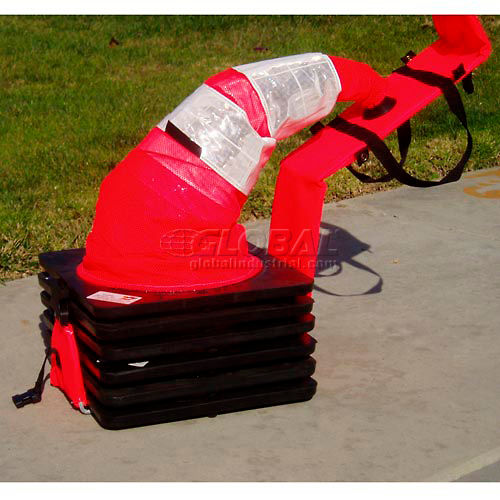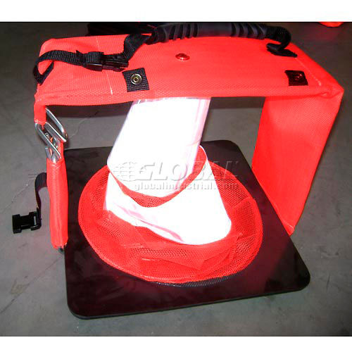 QUICK DEPLOY SPRING CONE TRAFFIC CONES Spring Loaded Traffic Cones Fold Down For Compact Storage And Bounce Back When Needed. Folds compact for easy storage in any trunk or truck. Flexible spring allows cone to automatically self deploy when not held down in folded position. Quickly delineates traffic at any scene using white reflective strips. Cone is made of bright orange flexible mesh with a heavy duty rubber base. Rubber bade grips roads in heavy traffic conditions. Includes holder to securely hold 6 cones in folded position. 28" H Cone with 13-5/8" X 13-5/8" 3 lb base. Meets MUTCH requirements for 28" reflective highway traffic cones. Sold in packs of 6.