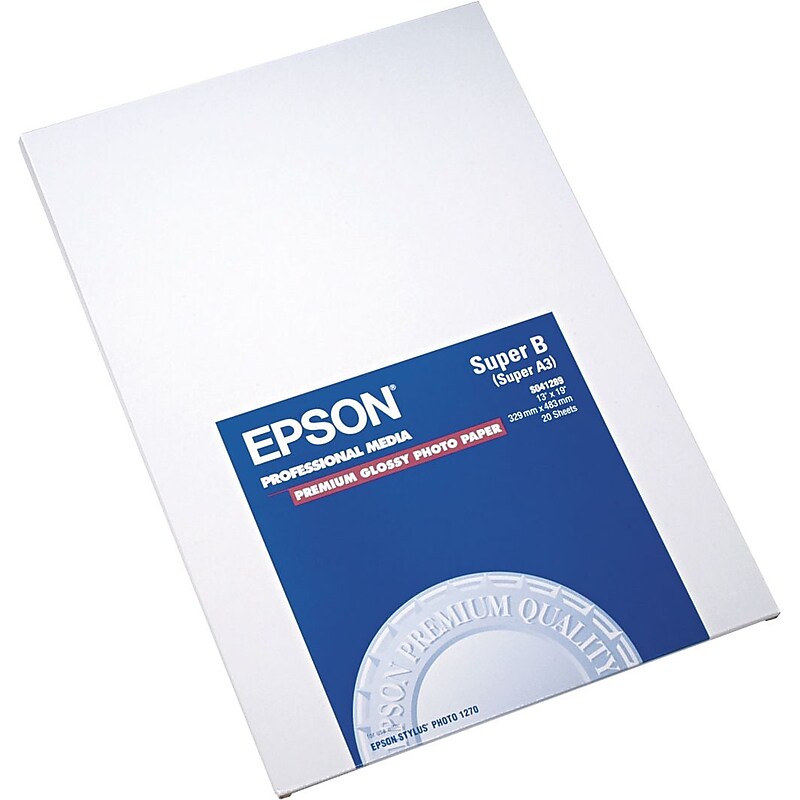The Epsonpremium photo paper in high-gloss finish, provides professional-level photo and digital graphic printing. It comes incolor to ensure excellent image contrast. This paper is suitable for printing favorite cherished photos and enlargements that are ideal to use with glass frames and photo albums. Ink dries quickly on this water-resistant dry surface to offer smudge-free printing. This paper renders traditional feel to the photographs. It offers long lasting prints to preserve your treasured memories. Size: 19". High gloss finish. 10. 4 mil thickness. Color: White. Brightness: 92%. Media weight: 252g/m-. Media size: Super B 19". Media quantity: 20 sheet.