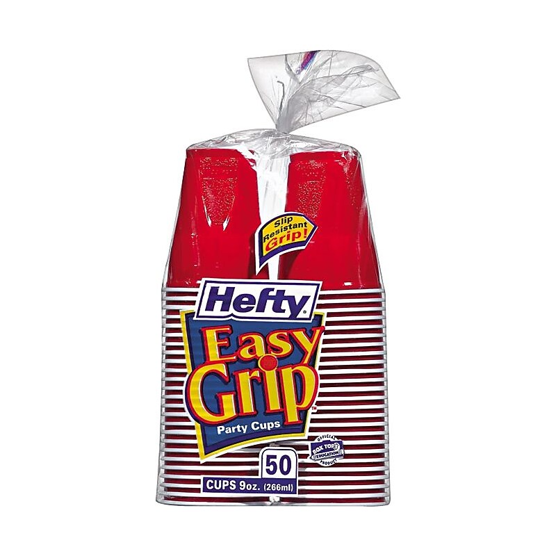 Hefty Easy Grip DisposablePlastic Party Cup is ideal for serving cold beverages at office, home or special events. Textured sides provide slip-resistant grip. Solid-colored plastic brightens any occasion. Perfect for adults and kids. Cold Cup: oz. (50) cups per pack. Made from paper. Color: Red. Hefty Easy Grip DisposablePlastic Party Cup is ideal for serving cold beverages at office, home or special events.