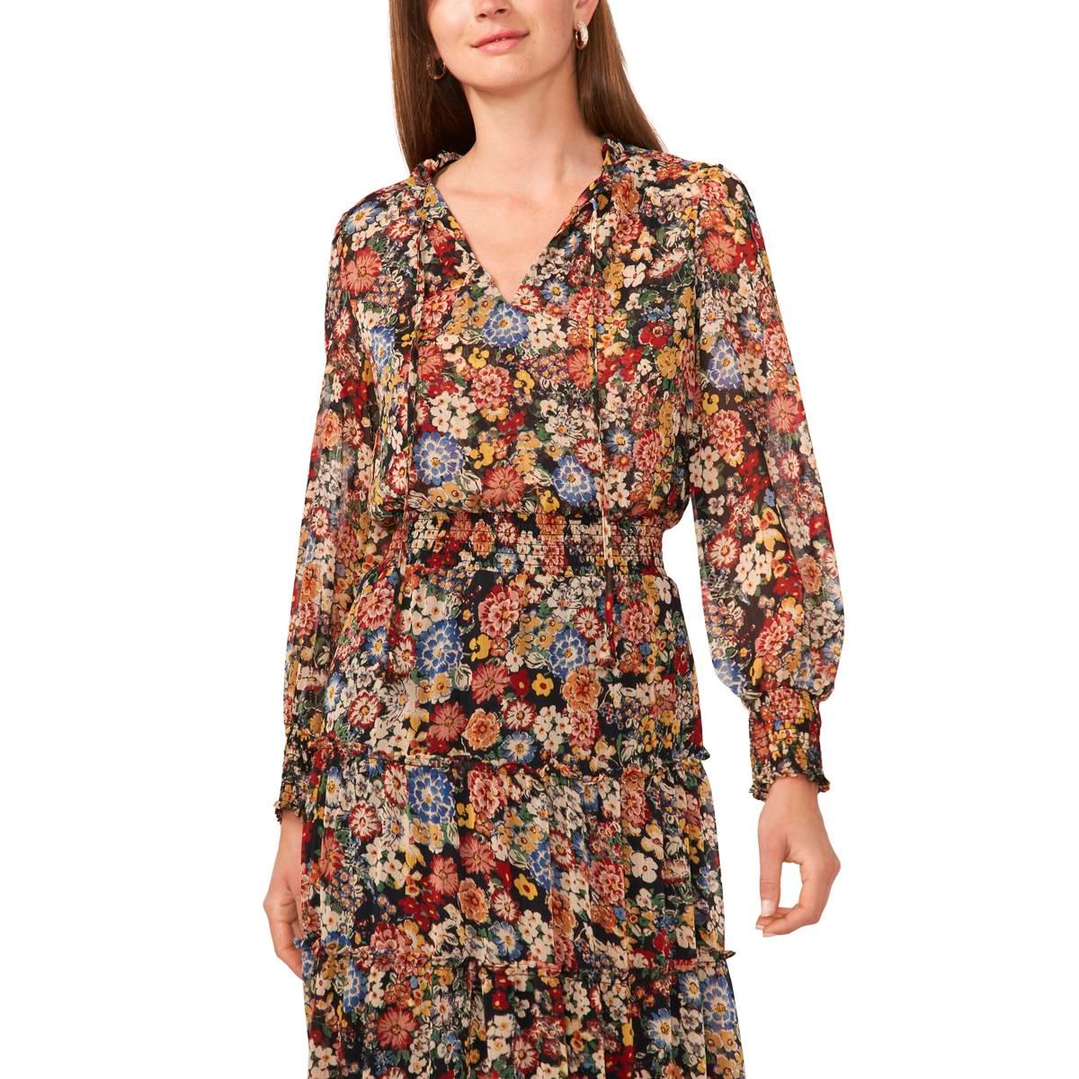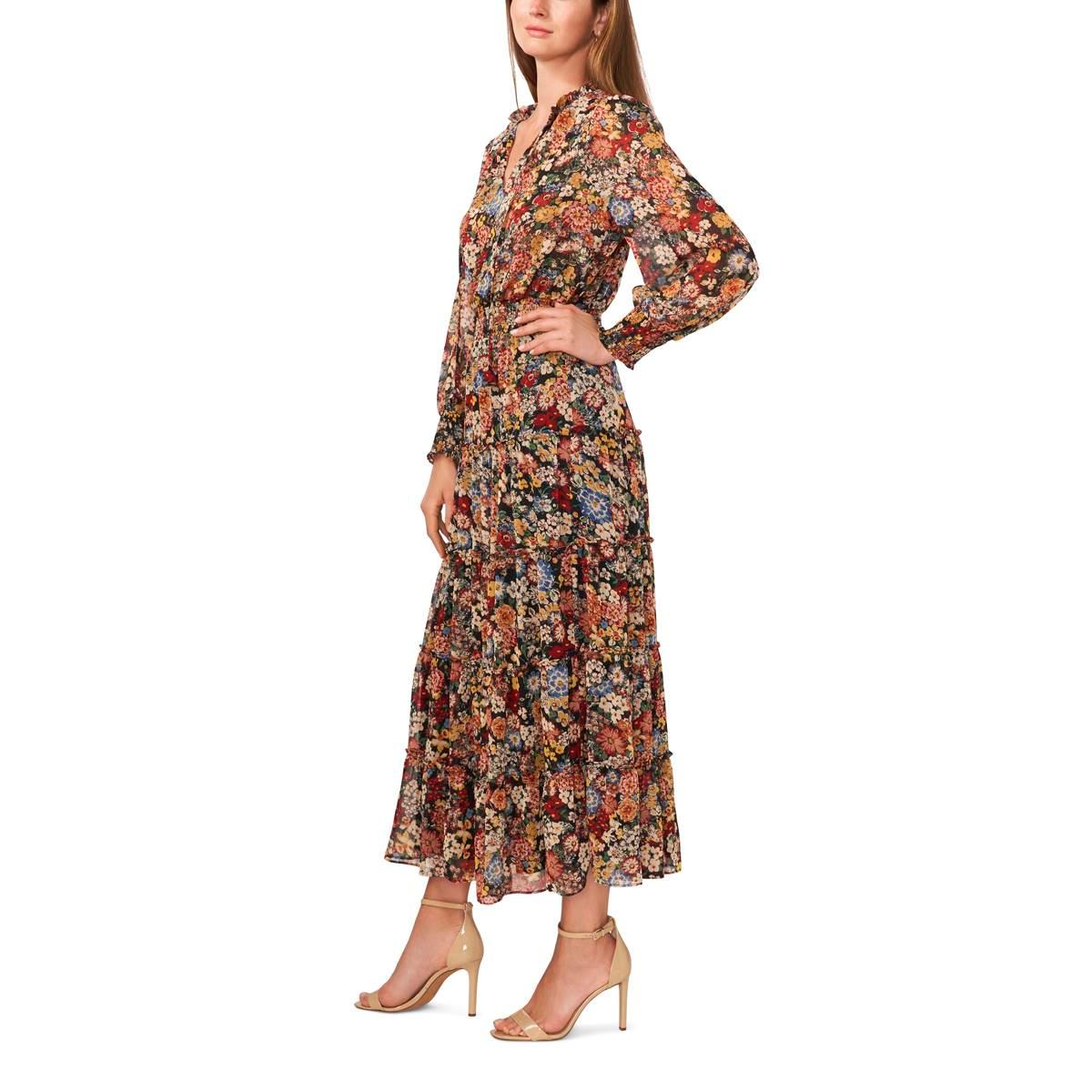 Womens MSK Long Sleeve Vintage Floral Chiffon Midi Dress