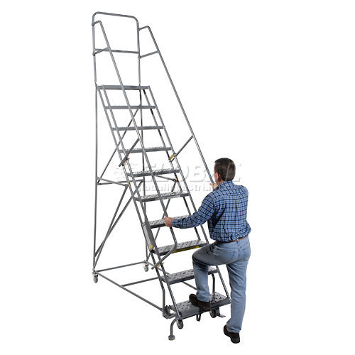 Buy 10 Step 24"W 20"D Top Step Steel Rolling Ladder - Perforated Tread for $1,199.00 at @ Globalindustrial.com