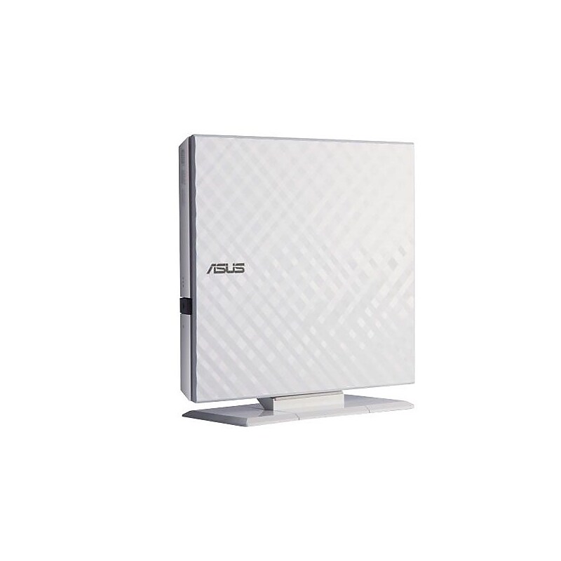 Slim, compact and lightweight, the Asus External Portable DVD Reader, White, is an excellent option to burn media files from your computer to a CD. Featuring a sleek and stylish body, this DVD writer lets you burn music, pictures, videos or movies to any black disc. It has a USB 2. 0 interface for easy compatibility with most type of devices. Maximum CD read speed: 24x. Color: Black and white. Interface: USB 2. 0. Dimensions: 0. 79" H x 5. 60" W x 5. 60" L. Burn music, data and videos to blank CD's or DVD's with the Asus External Portable DVD Reader.
