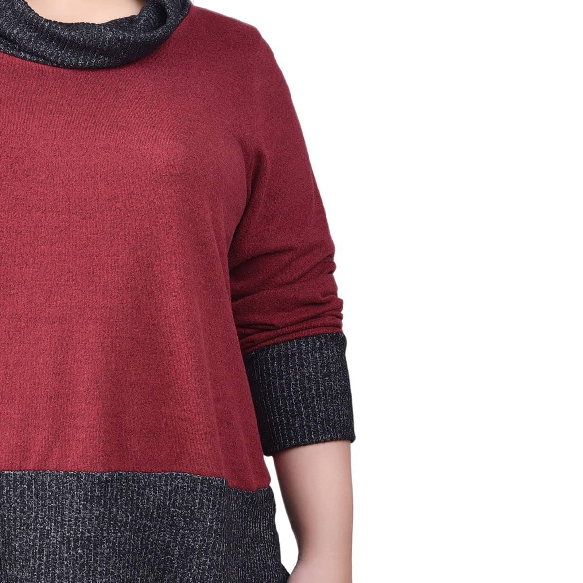 Plus Size NY Collection Long Color Block Cowl Neck Sweater