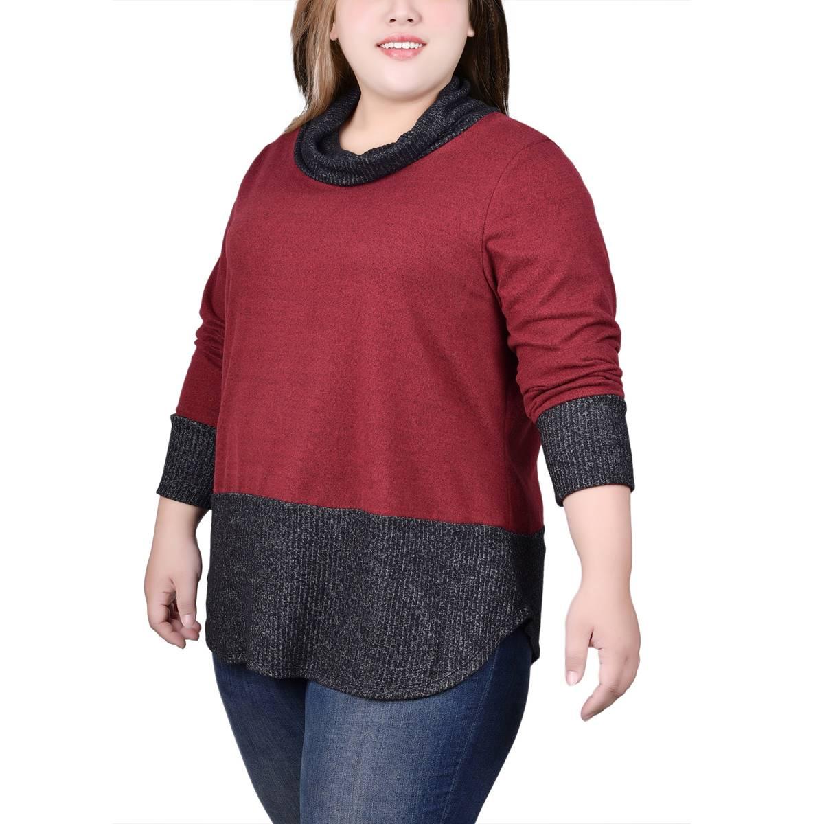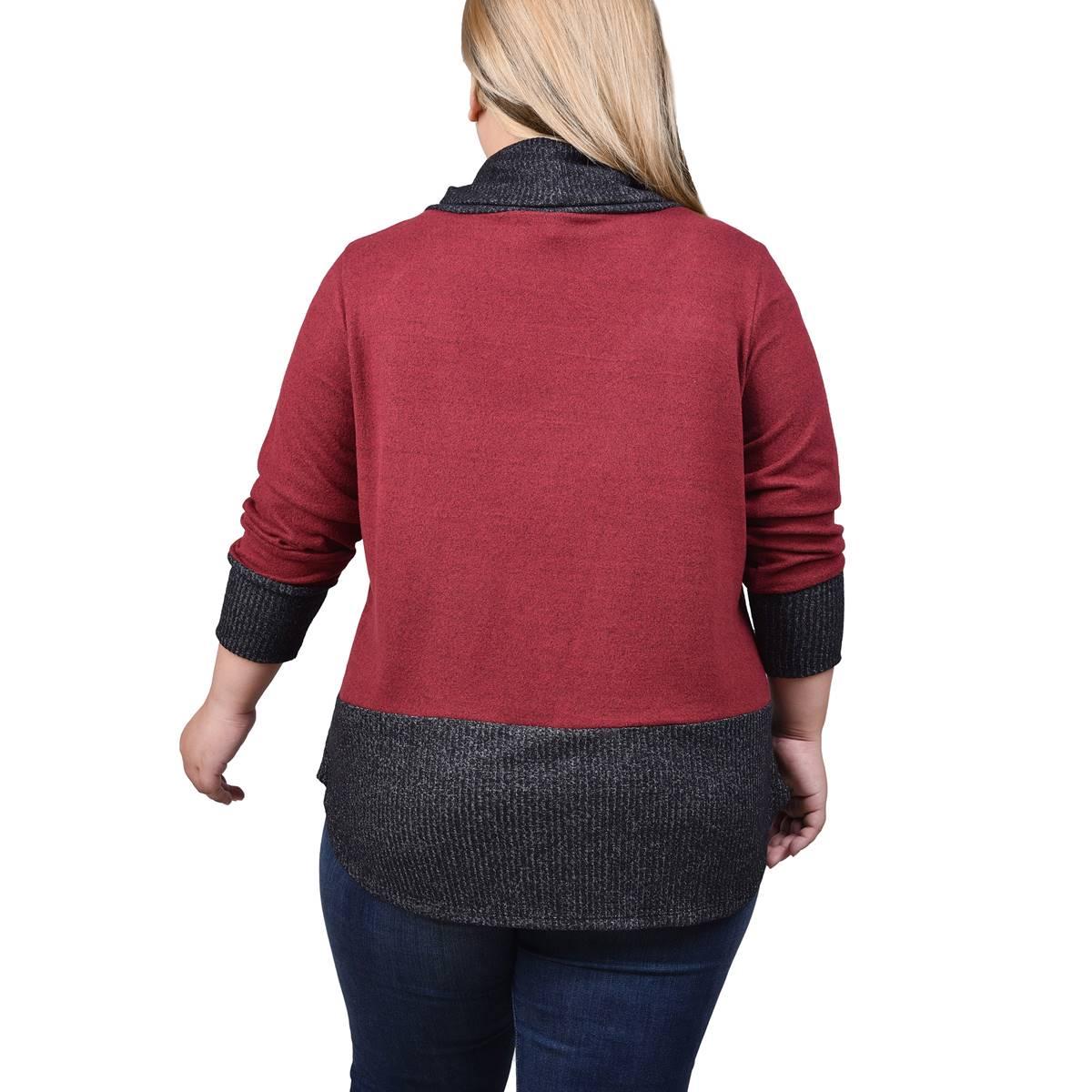Buy Plus Size NY Collection Long Color Block Cowl Neck Sweater for $10.99 at @ Boscovs.com