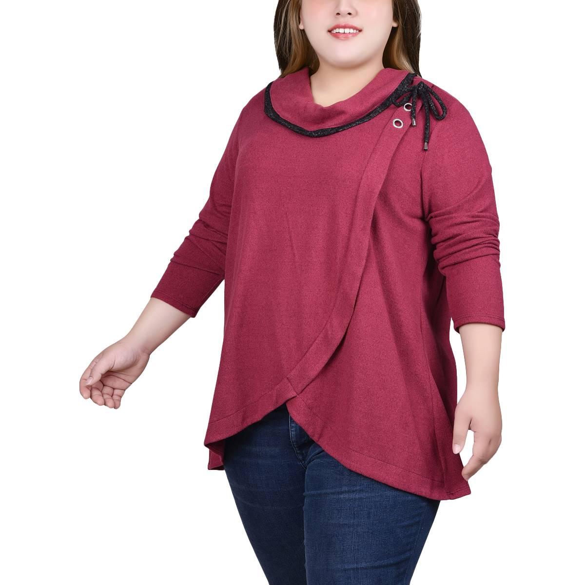 Buy Plus Size NY Collection Solid Layer Grommet Tie Shoulder Blouse for $10.99 at @ Boscovs.com
