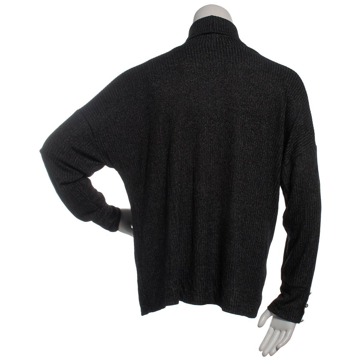Pattern: Marled Sleeve Length: Long Sleeve Neck: Cowl Neck Decorative button cuff Rib-knit styling Linear hemline Cool iron.