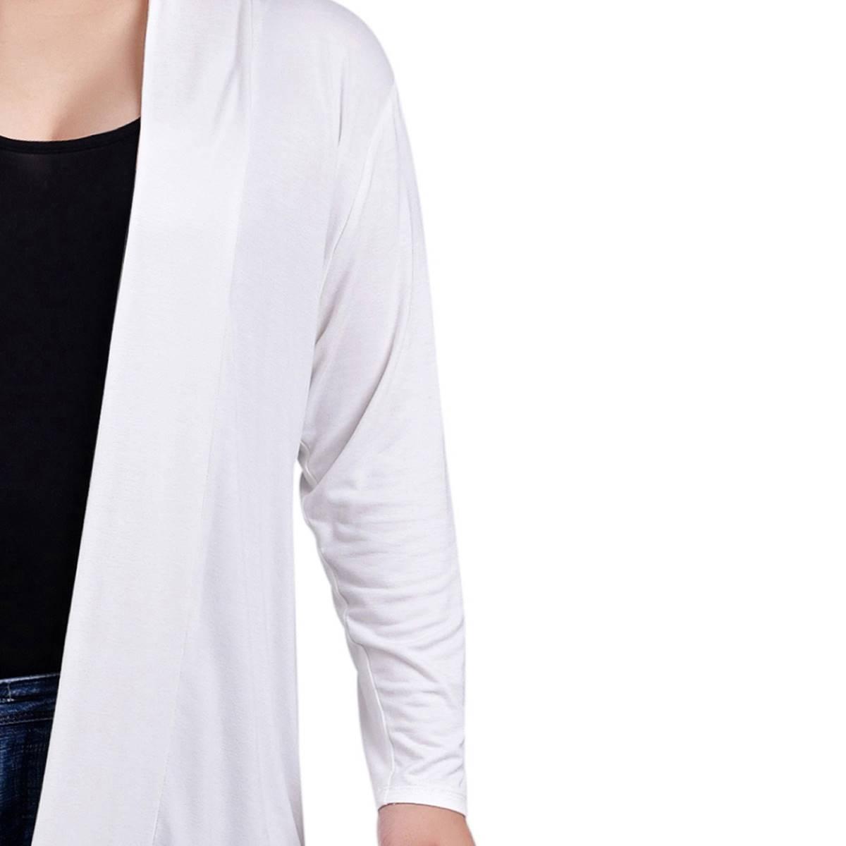 Pattern: Solid Sleeve Length: Long Sleeve Length: 43.5" Sheer chiffon elongated back Inverted pleat back High-low styling Open front.