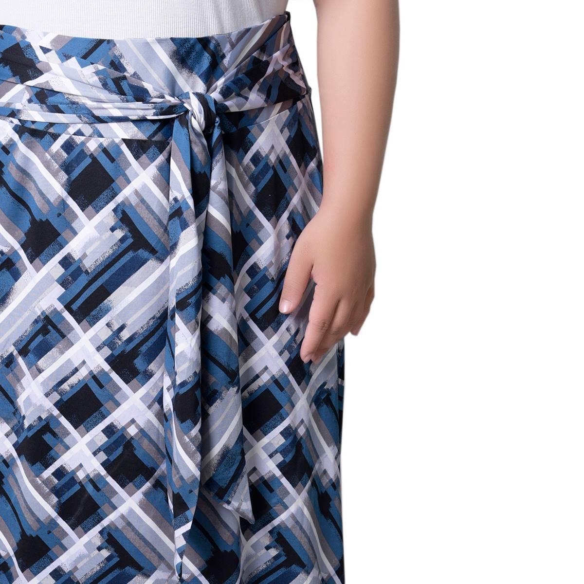 Pattern: Crosshatch Rise: High-Rise Skirt Length: 40" Attached sash tie waist Pull-on styling Cool iron Unlined.