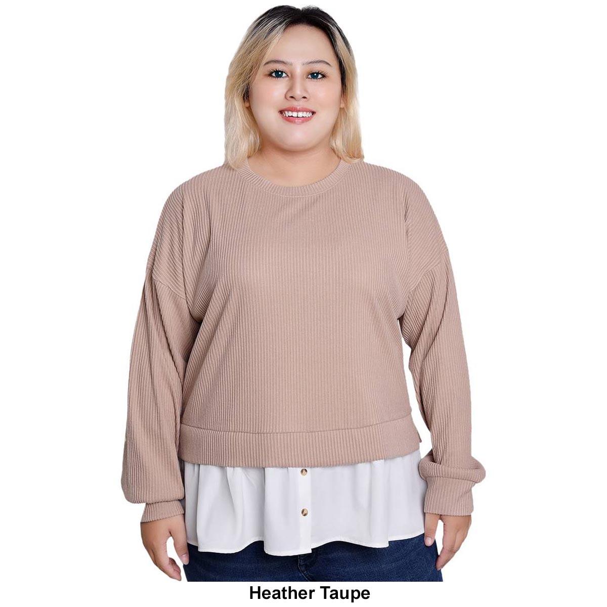 Plus Size NY Collection Heathered 2Fer Color Block Blouse