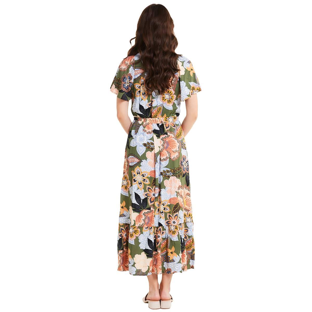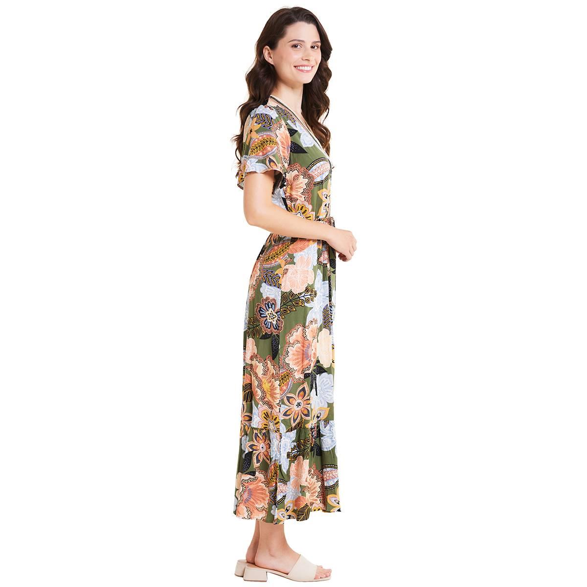 Womens Luxology Short Sleeve V-Neck Wild Flora Challis Maxi Dress