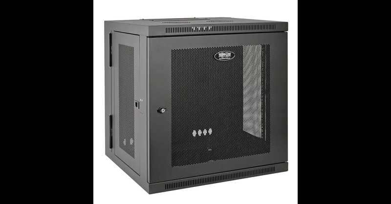 Tripp Lite 10U wall-mount rack enclosure cabinet includes adjustable rack rails with square mounting holes to accommodate standard 19" rackmount equipment. Wall-mount bracket allows the cabinet to swing away from the wall for easy access. Wall mountable form factor. Rack size: 10U. Dimensions: 21. 57"(H) x 23. 62"(W) x 21. 6"(D) external. Adjustable front and rear vertical rackmount rails. Hinged cabinet swings away from wall bracket for easy equipment access (swing direction is reversible). Locking, reversible front door and locking, removable side panels. Fully assembled for quick installation. Form factor: Wall mountable. Weight capacity - stationary: 200 lbs. Cable access hole measurement: 9. 812"(L) x 2. 35"(W). Installed whole system maximum rack depth: 20 1/2", Installed whole system minimum rack depth: 3". Grounding lug: Front and back door frames. Certifications: NOM (Mexico): tested to NOM (Mexico), approvals: EIA-310-E, IEC 60297-3-100, RoHS, DIN 41494, IP20 protection rating, RoHS. Weight: 55 lbs. Warranty: 5 years limited. Tripp Lite 10U wall-mount rack enclosure cabinet is designed to integrate wall-mounting and is fully assembled for quick installation.