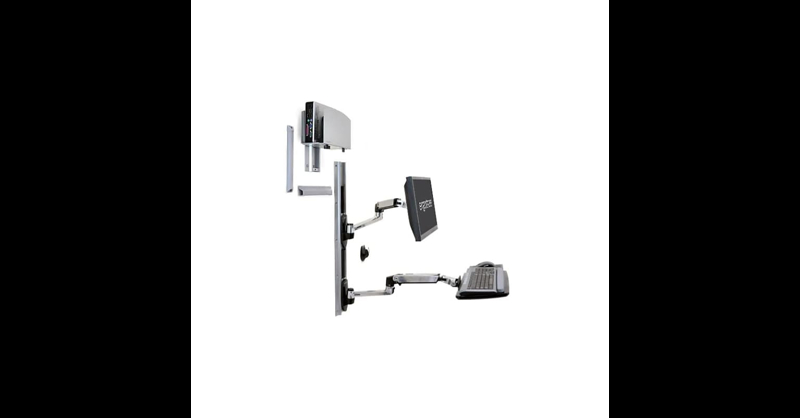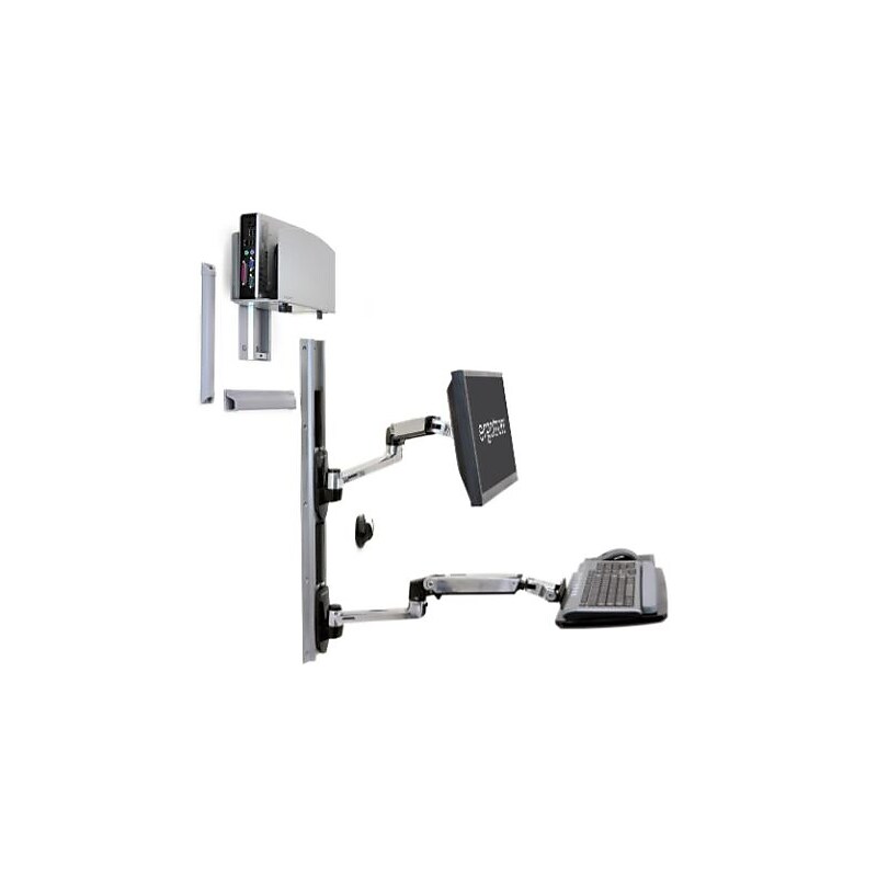 Ergotron 45-247-026 comes with medium silver CPU holder. It is made with durable polished aluminum construction. It is a complete solution that accommodates an LCD, keyboard and CPU while providing vertical and side-to-side motion. It is perfect for space-constrained areas: simply fold the keyboard and LCD tight against the wall when not in use. 10,000-cycle test applied to lift mechanism, ensuring years of trouble-free height adjustment. Polished aluminum construction offers greater durability and enhanced aesthetics. Snap-fit cap secures interface of arms to extensions for greater stability. Weight Capacity:Display = 525 lbs (2. 311. 3 kg); keyboard = 5 lbs (2. 2 kg); CPU = 40 lbs (18 kg). With monitors greater than 20 lbs (9. 1 kg) in weight, the vertical range of motion may be reduced up to 4. 5" (11 cm) for a total height range of 8. 5" (22 cm). VESA FDMI MIS-D, 100/75, C (hole pattern: 100 x 100 mm & 75 x 75 mm). CPU Size Range: 3-3/8" to 8" (9 to 20 cm) wide; CPUs down to 2" (5 cm) wide can be accommodated by installing the included CPU spacer within the holder. Includes theft deterrent anchor holes for cable locks and fasteners for locking the holders width. Includes theft deterrent anchor holes for cable locks. Articulating arms feature full tilt/pan capability and 13" (33 cm) height adjustment, providing premium ergonomic adjustment. Extends LCD up to 25" (64 cm); keyboard tray extends up to 35" (89 cm); push your display and keyboard out of the way when not in use. Ideal for space-constrained rooms - keyboard folds to within 3. 5" (9 cm) of wall in storage position. LCD arm folds back to a depth of 5. 3" (13 cm). Ergonomic back-tilt keyboard tray ensures wrists remain in a neutral position during data entry - avoid repetitive-stress injuries while increasing comfort and productivity. Convenient bi-focal viewing: Screen lowers and positions for optimized viewing by users with bi-focal glasses. Patented Constant Force lift-and-pivot motion technology. 10-year manufacturer limited warranty. Effortlessly and independently position the LCD and keyboard to the most comfortable viewing and typing position, all while maintaining eye contact with your patient.