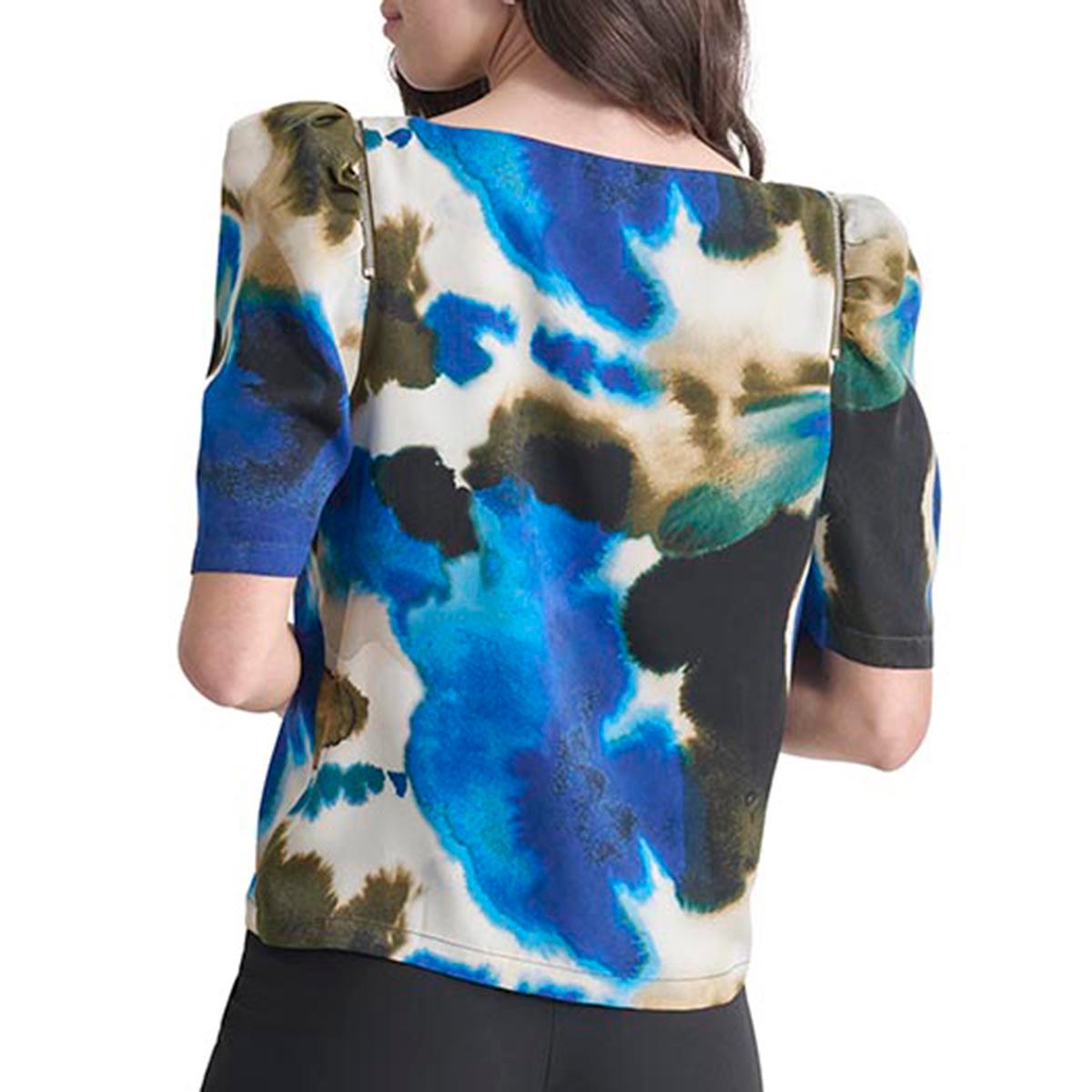 Womens DKNY Short Sleeve Watercolor Swirl Zip Shoulder Blouse