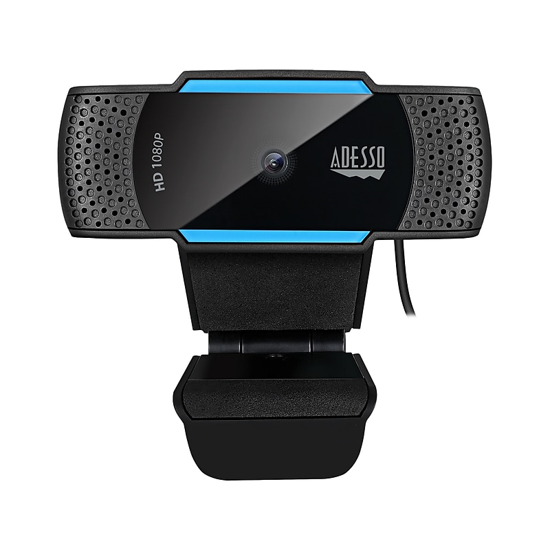 Adesso's CyberTrack H5 is a 1080p auto focus high resolution desktop webcam with H. 264 video data compression that allows you to record and share colorful vivid HD quality video with fine detail. This webcam includes a built-in dual microphone that lets your voice be heard loud and clear, whether you are chatting with loved ones or doing business on a video call. Moreover, it also includes a tripod mount and a privacy shutter, with all these great features, you can easily record and transmit your videos to everyone!. 1080p autofocus high-resolution desktop webcam with H. 264 video data compression and 2. 1MP CMOS sensor. Built-in dual microphones provide you with stereo recording quality and remarkable clarity to ensure every word is heard with the noise-canceling technology. Dimensions: 3"H x 3"W x 1. 26"D. Features USB 2. 0 port. H. 264 standard compresses a digital video file so that it only uses half the space of MPEG, to deliver the same quality video; you can enjoy stunning HD video without sacrificing speed or performance. CMOS image sensor provides crisp, colorful, and clear HD quality video and snapshot image at a maximum resolution. Compatible with popular videoconferencing applications, such as Zoom, Facebook, Skype, Webex, GoToMeeting, Google Meet, Microsoft Teams, and much more. Covers your webcam when not in use, and it is perfect to provide privacy, security, and peace of mind to individuals, groups, organizations, companies, and governments. Comes with a tripod mount, convenient for you to place the computer camera. With advanced driver, you can easily adjust the webcam's settings, such as brightness, contrast, saturation, sharpness, zoom in/out, and mirrored or normal image orientation to your preference. Leverage the driver to unlock your webcam's full potential with configurable features, such as photo resolution, video resolution, file format, refresh rate and microphone, speaker volume level. Compatible with Windows 10/8/7/Vista; macOS 10. 6. Comes.