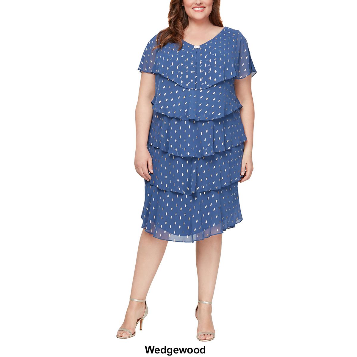 Buy Plus Size SLNY Metallic Dot Overlay Tier Hem Sheath Dress for $98.00 at @ Boscovs.com