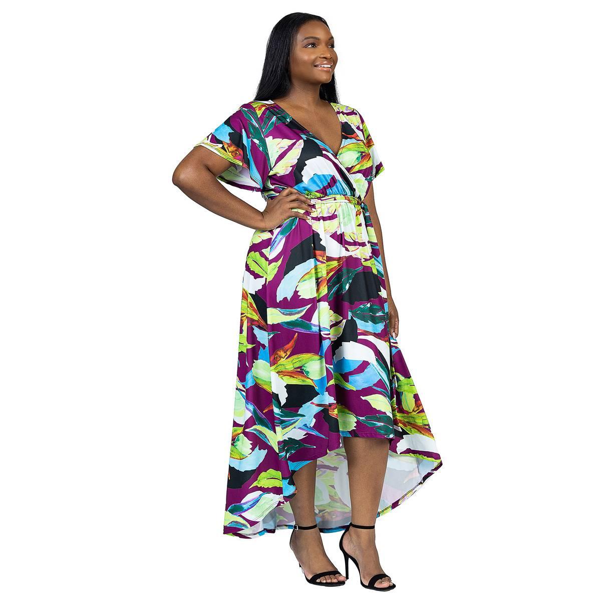 Plus Size 24/7 Comfort Apparel Floral High Low Wrap Dress