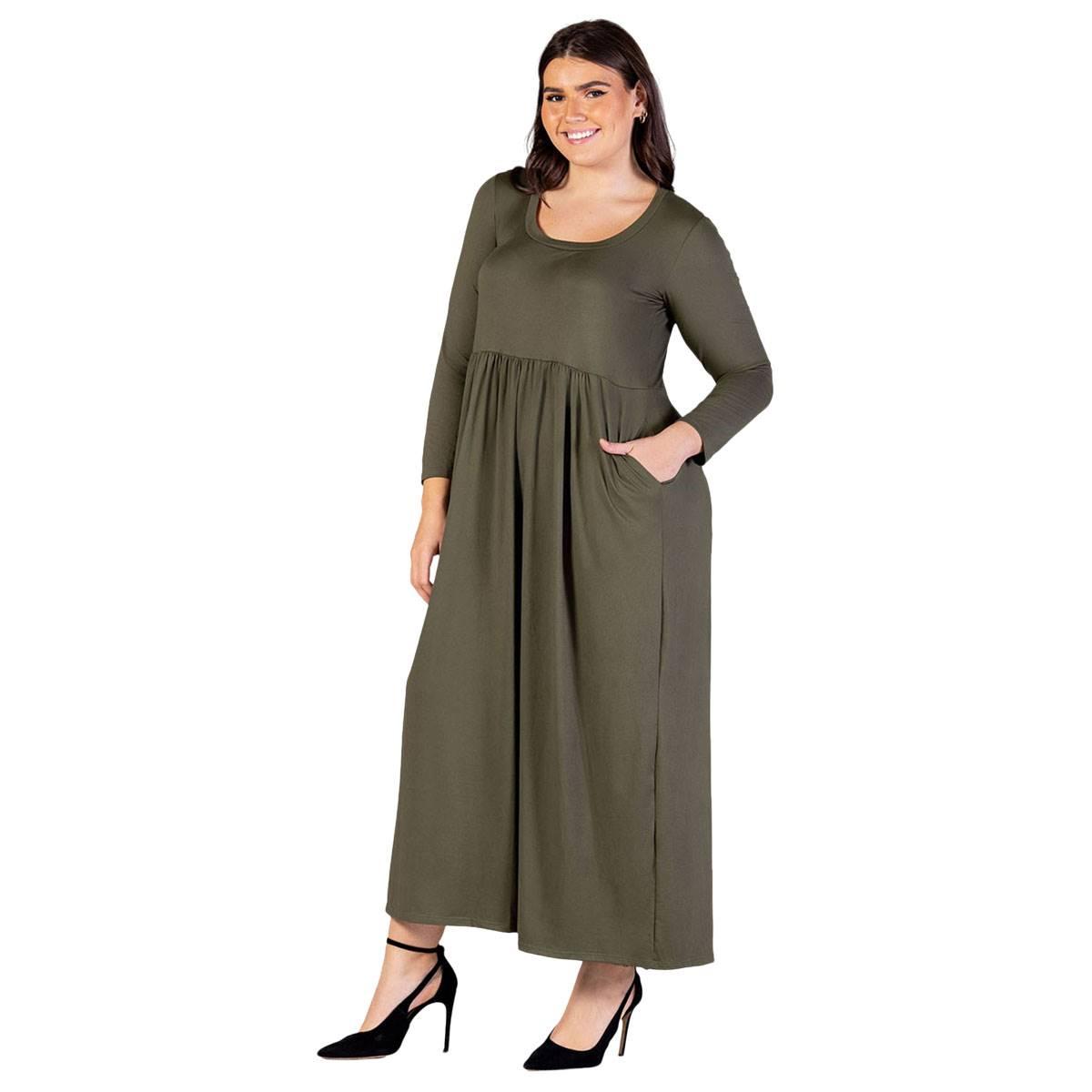 Buy Plus Size 24/7 Comfort Apparel Empire Waist Pocket Maxi Dress for $38.21 at @ Macys.com
