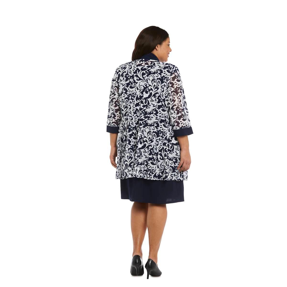 This Plus Size R&M Richards 2-piece puff print jacket dress is perfect for a casual office look. A gleaming statement necklace falls from the neckline of this classic sheath dress, designed with a printed jacket to complete the look.