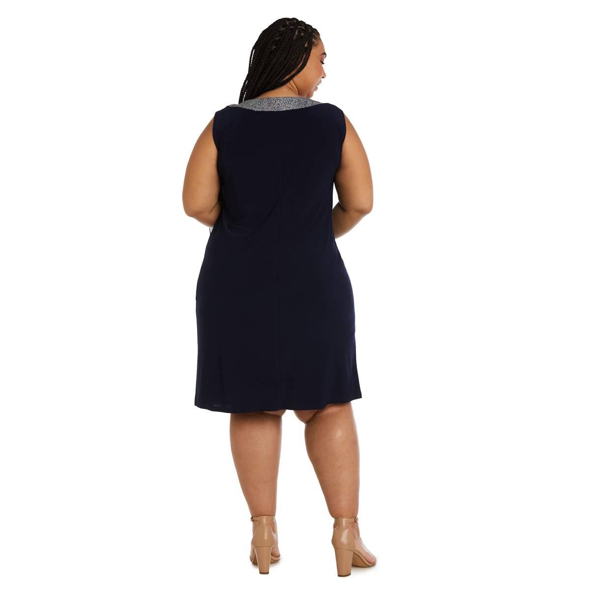 The possibilities are endless with this Plus Size R&M Richards 2-piece foil knit detail jacket dress. A round neckline features shimmering metallic foil. The versatility of the jacket allows for more freedom in styling. Go without the jacket and be bold with earrings and jewelry or let the jacket do the embellishing.