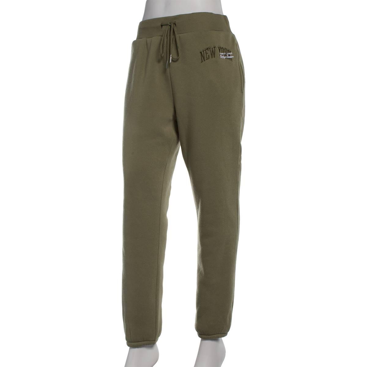 Pattern: Solid Leg Style: Ankle Boyfriend fit Drawstring waist Sherpa lined Two functional slip pockets Embroidered "New York: Varsity League, College Division" text on upper left leg.